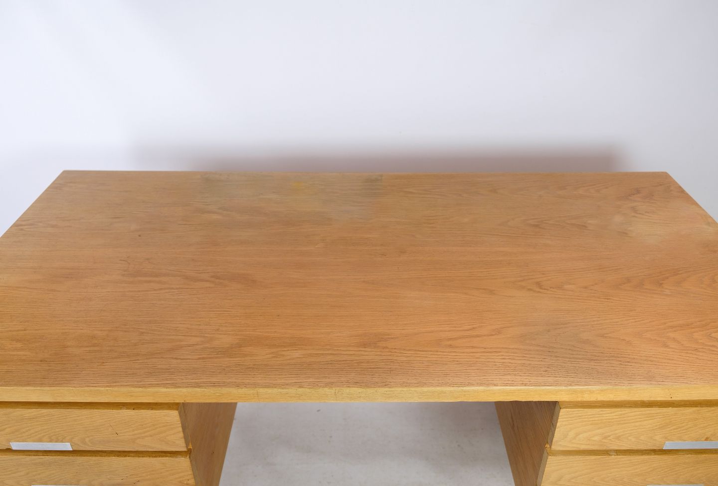 Please contact us for price informationThe oak desk, model EP-401, designed by Kai Kristiansen and Eigil Pedersen in 1960, is a unique example of Danish furniture design and craftsmanship at its best.