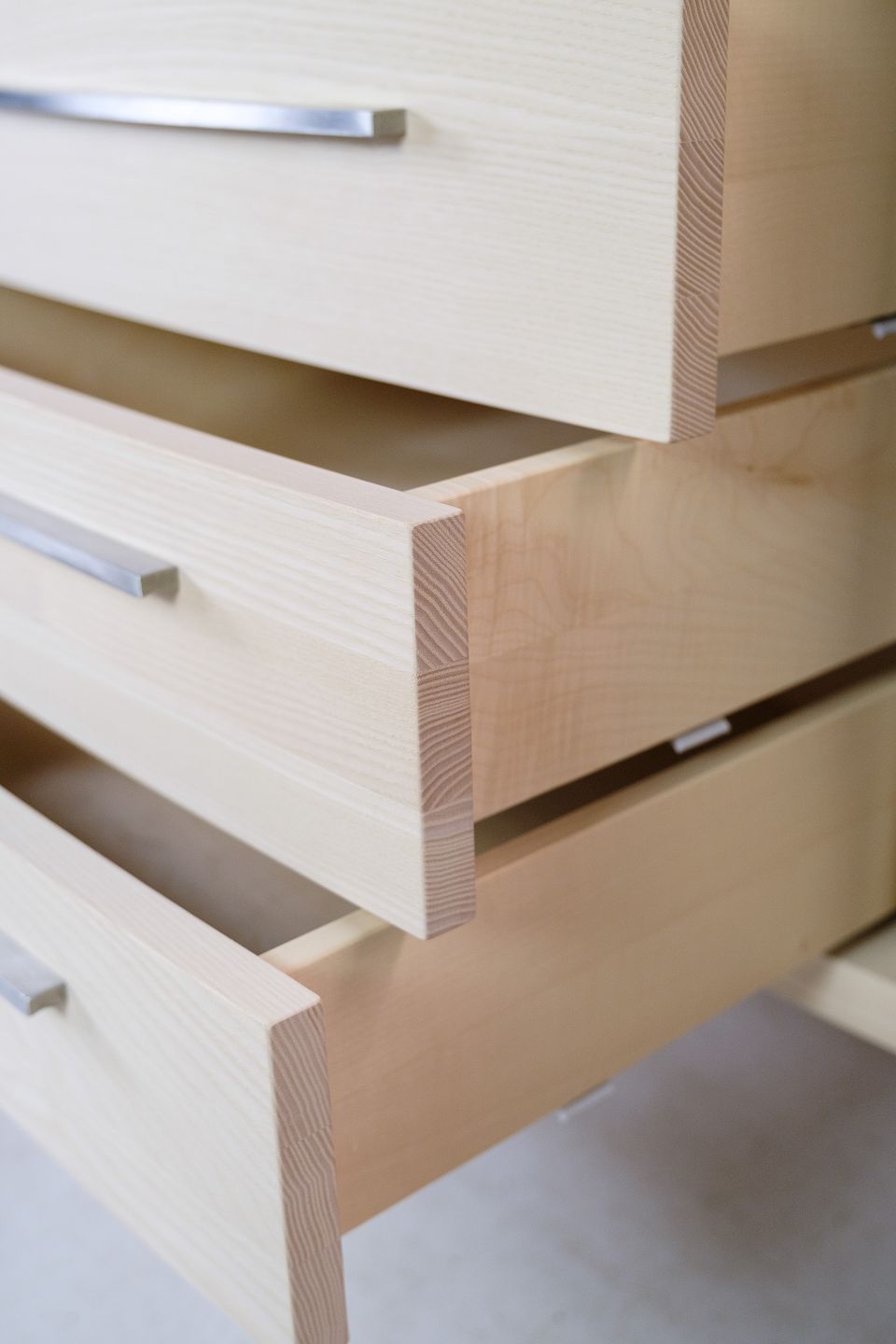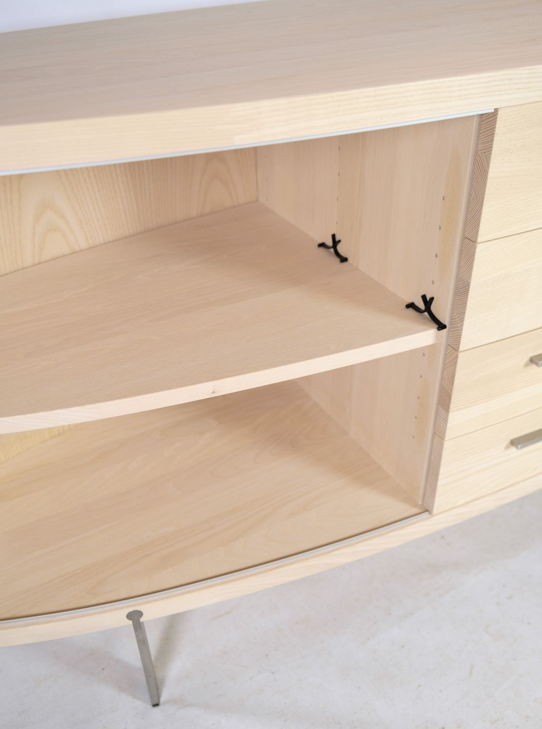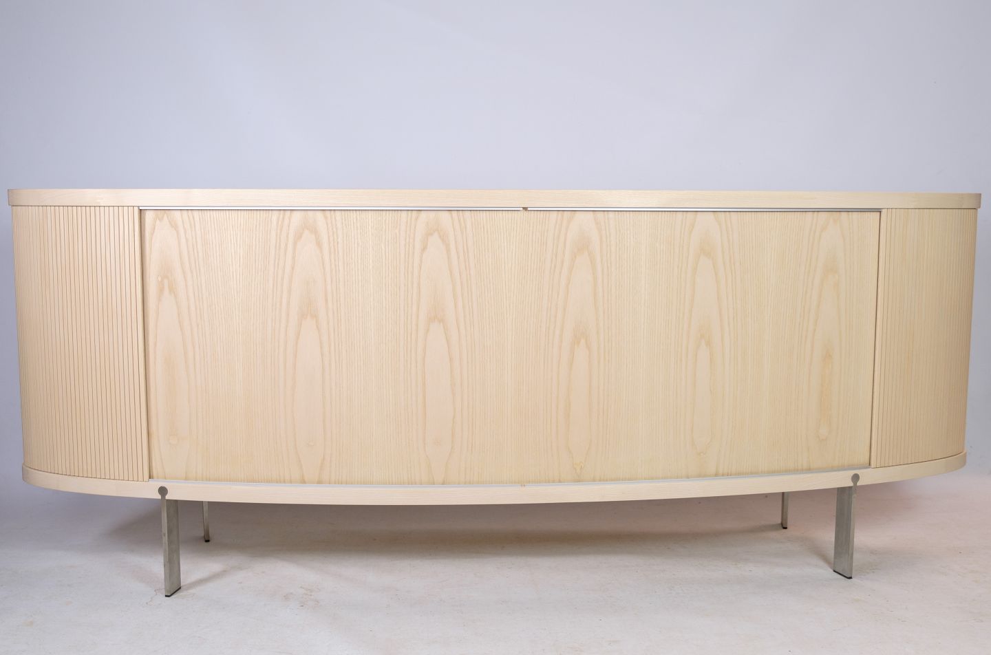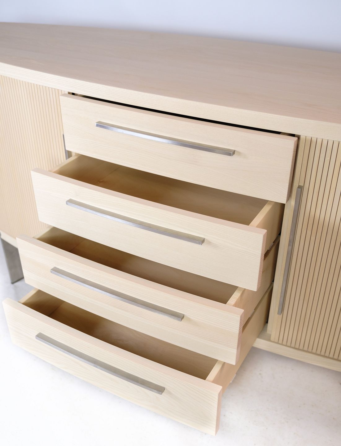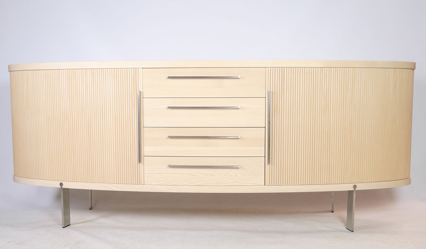 Sideboard in ash wood, model AK-1300, designed and manufactured by Naver Collection, a classic oval sideboard with shutter doors that has been given a modern twist. In like new condition with very few signs of use.