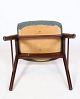 Set of 4 armchairs of Danish design in rosewood manufactured by Korup Stolefabrik in blue fabric from around the 1960s.