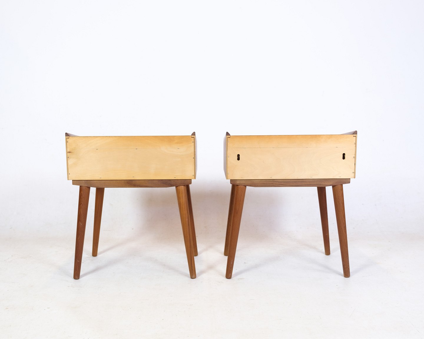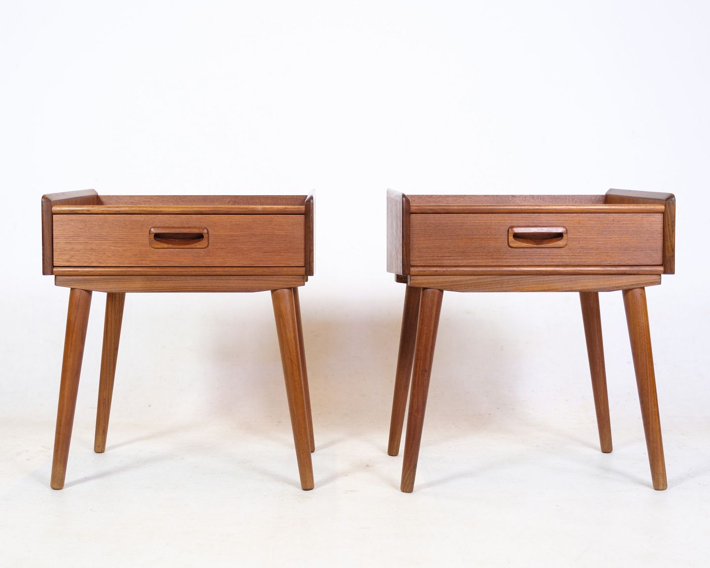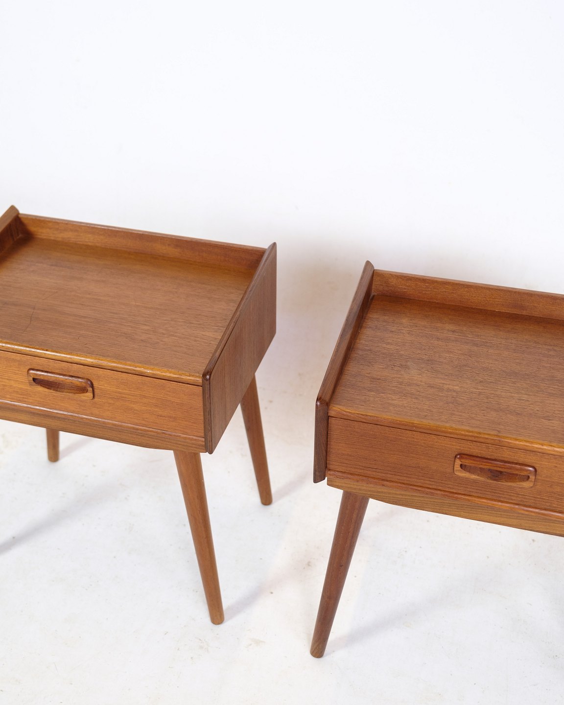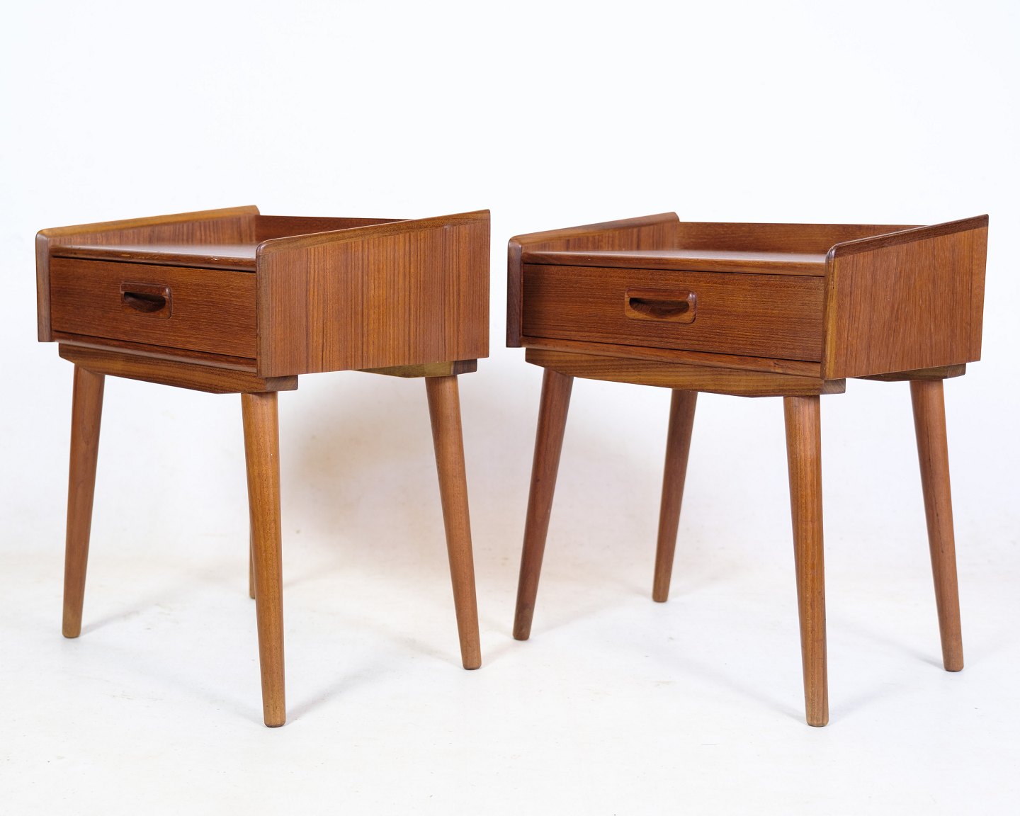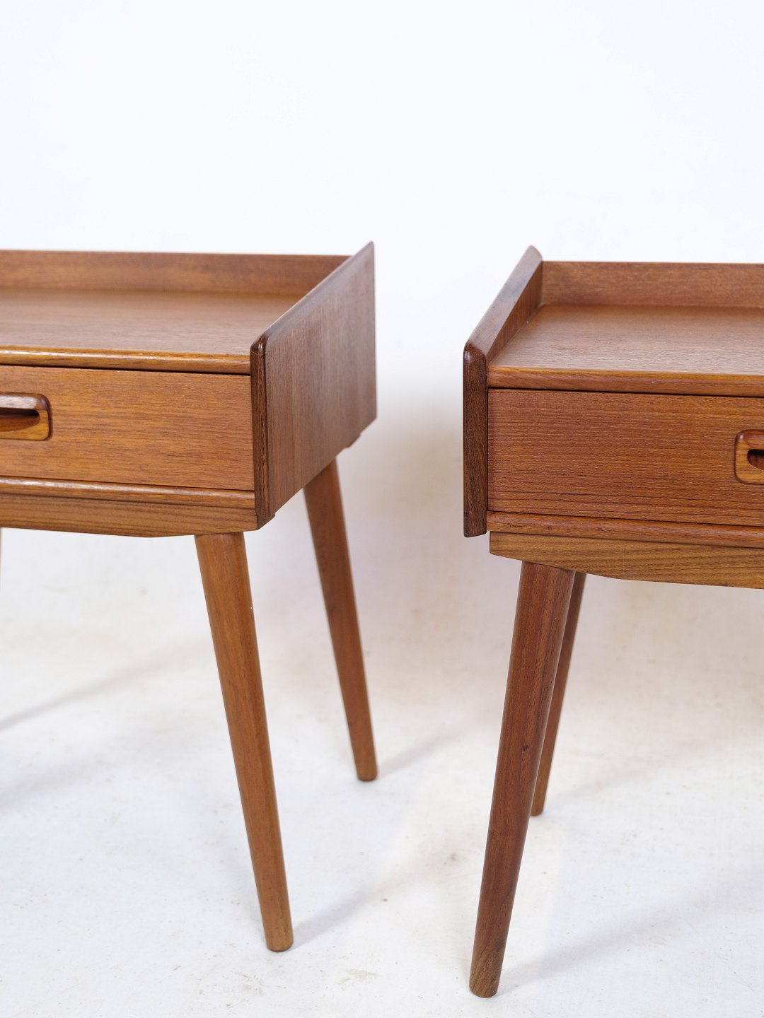 SoldA set of 2 bedside tables of Danish design in teak wood with drawer with handle from around the 1960s.