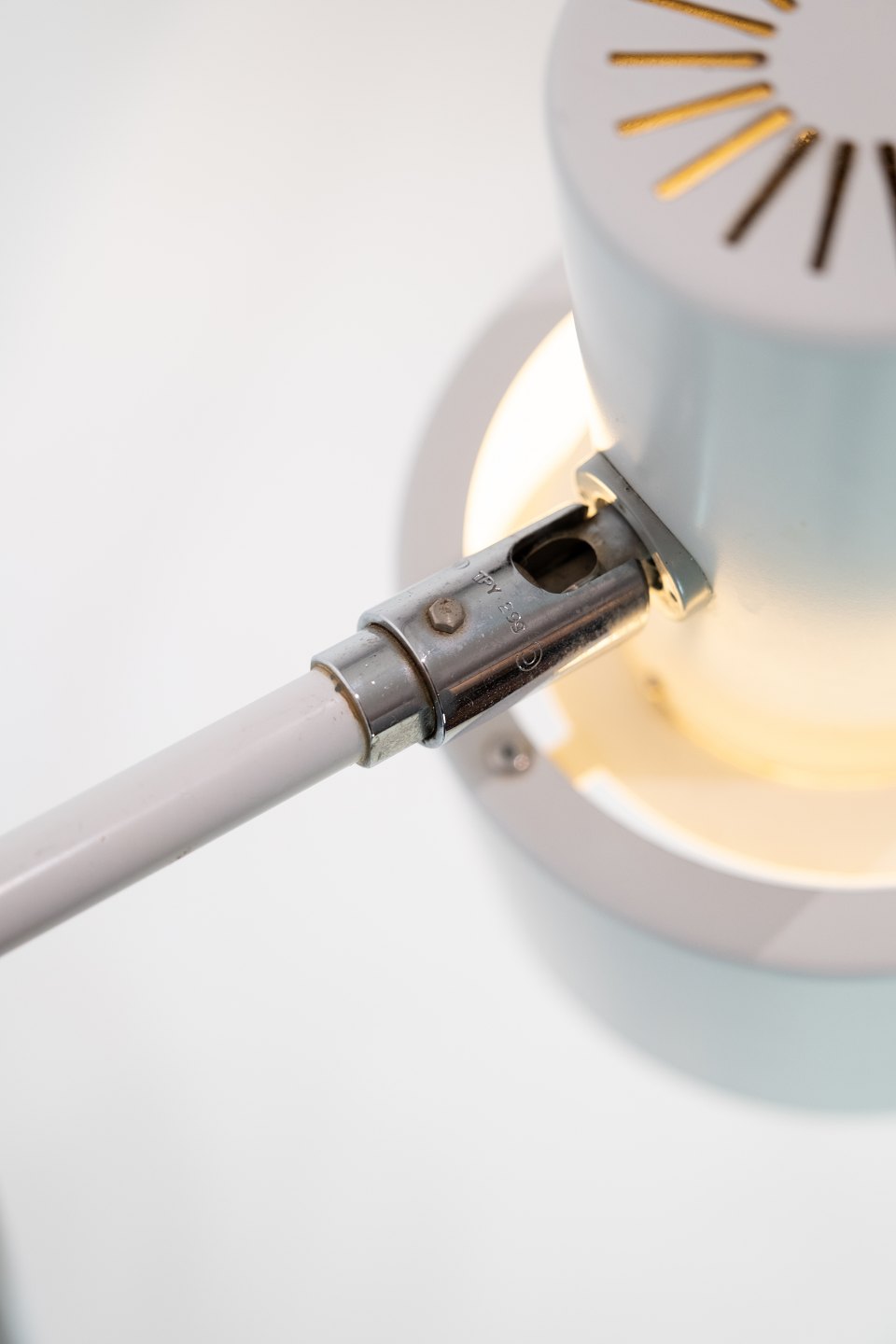 SoldFloor lamp in white lacquered metal, model "Junior," designed by Jo Hammerborg and manufactured for Fog & Mørup, is a classic and timeless lamp created by a recognized Danish designer and manufacturer.