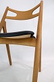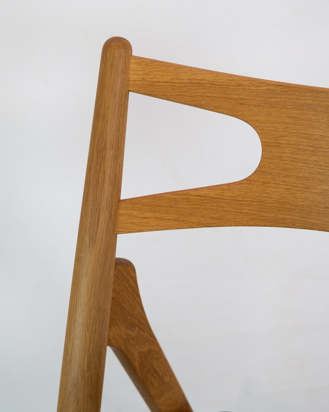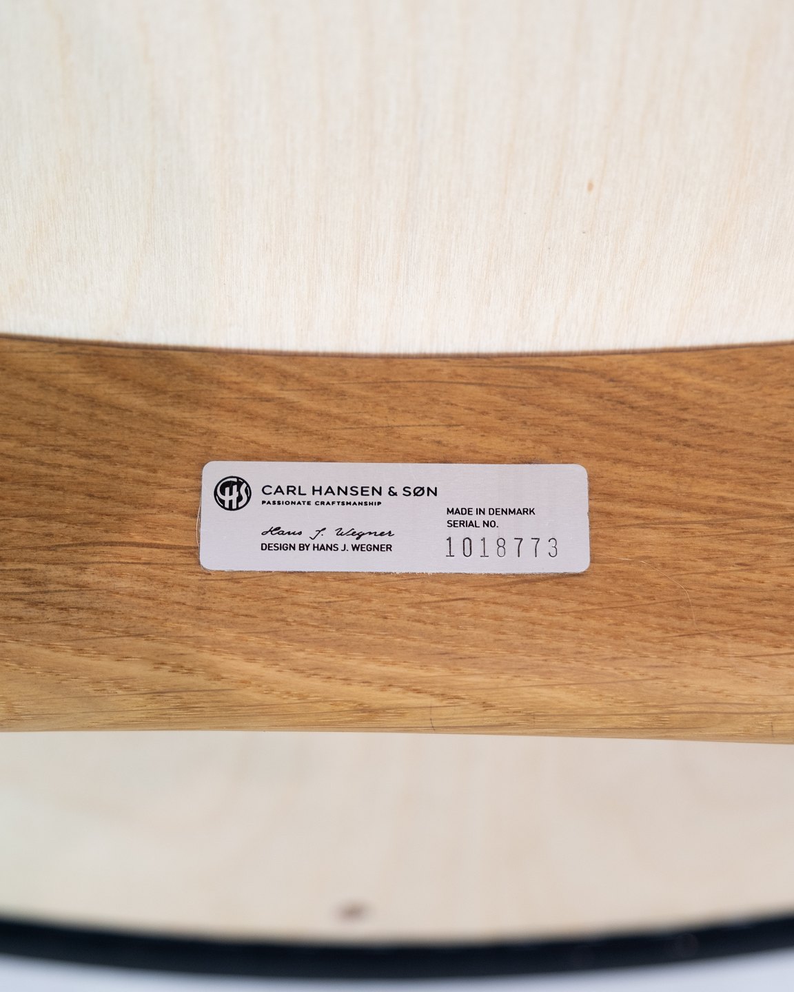 The oak frame gives the chair a natural and warm feel and highlights the wood's beautiful texture. Wegner's use of organic forms in the design creates a gentle and harmonious aesthetic.