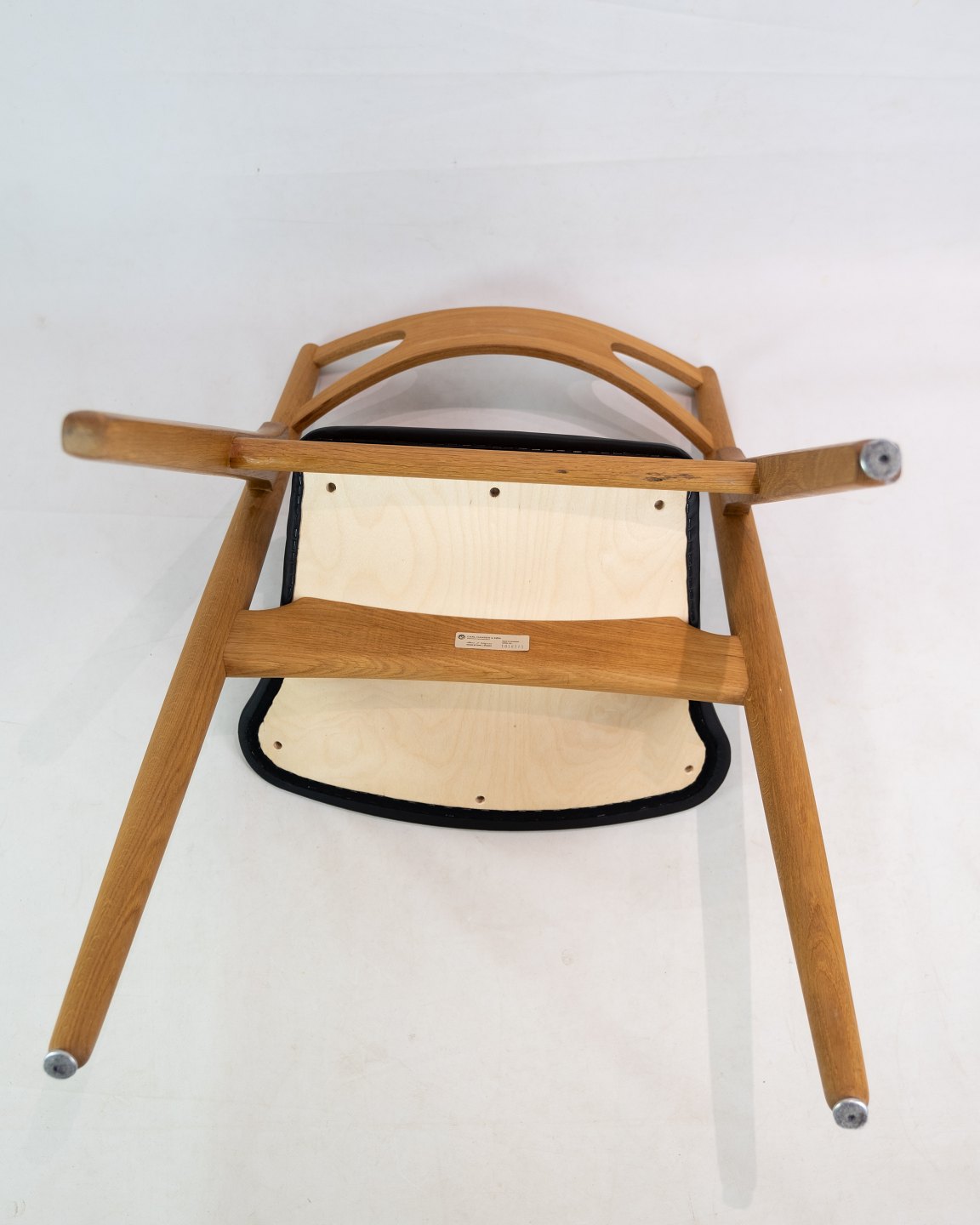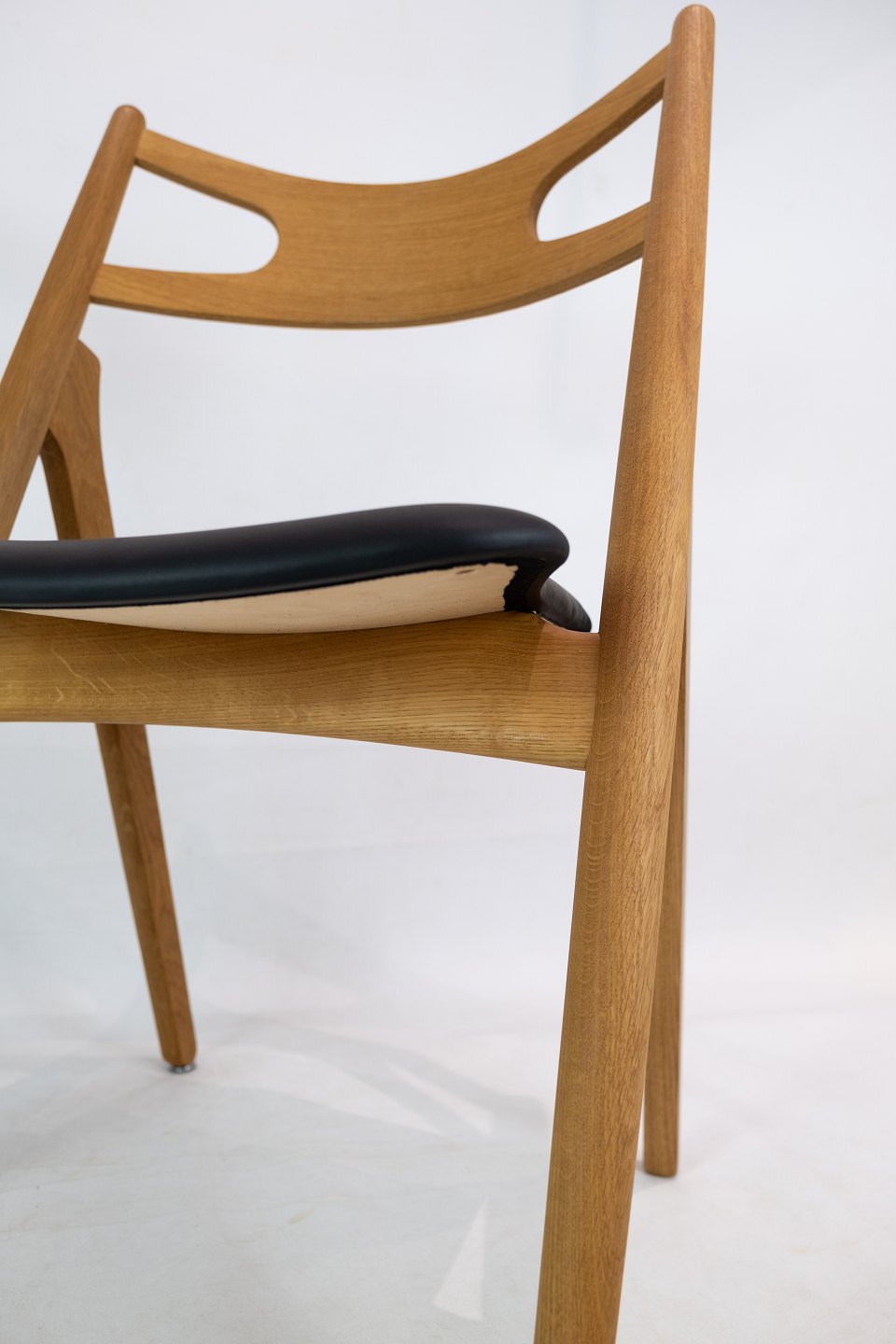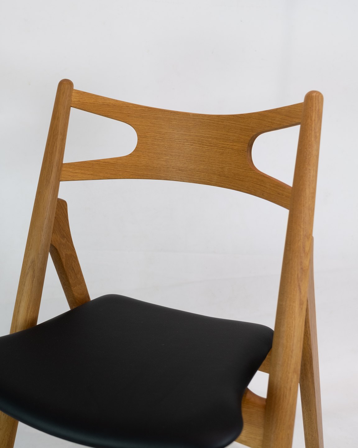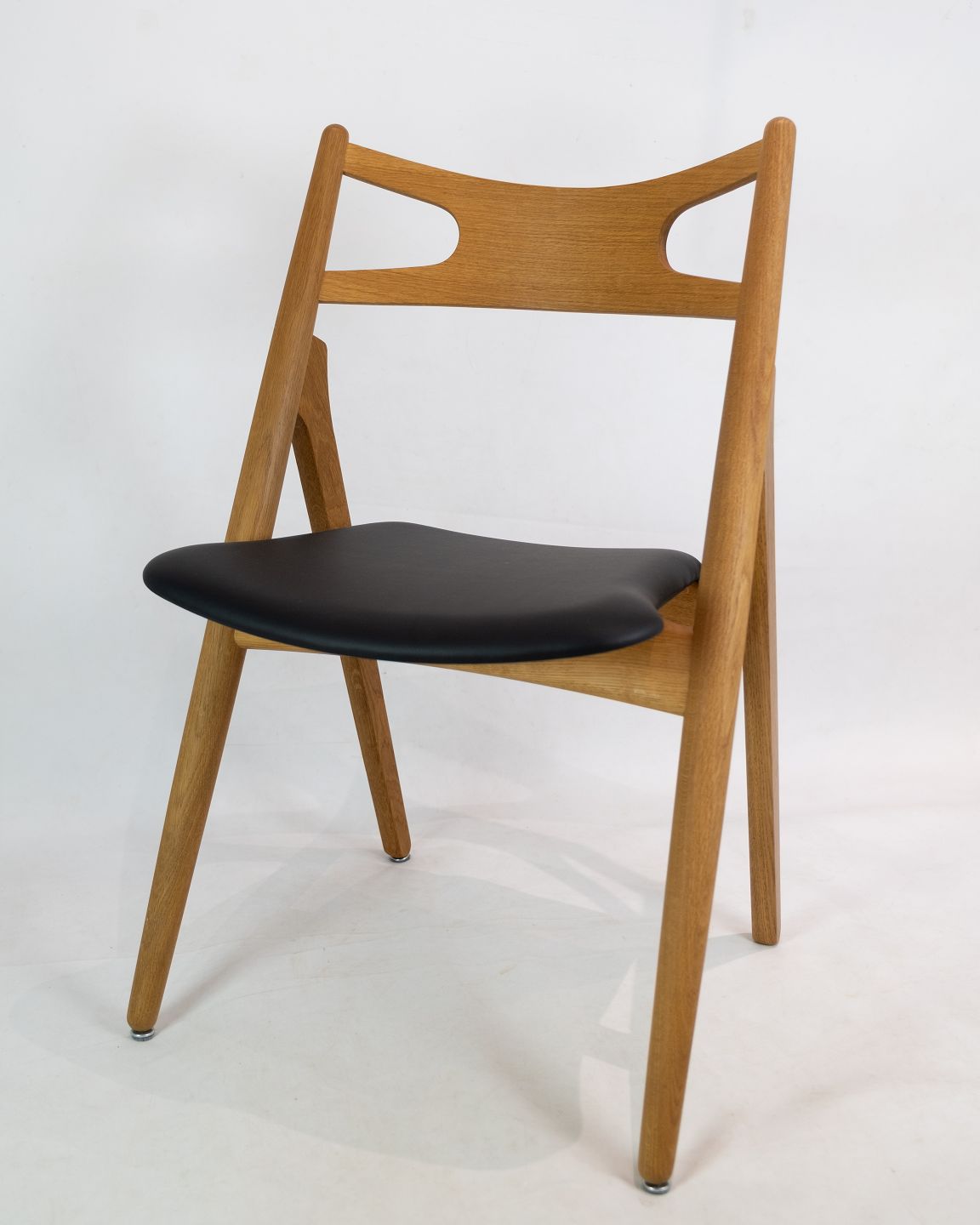 SoldThe chair, model CH29, designed by Hans J. Wegner in oak and black leather, produced by Carl Hansen & Søn, is an iconic and timeless design chair of high quality.