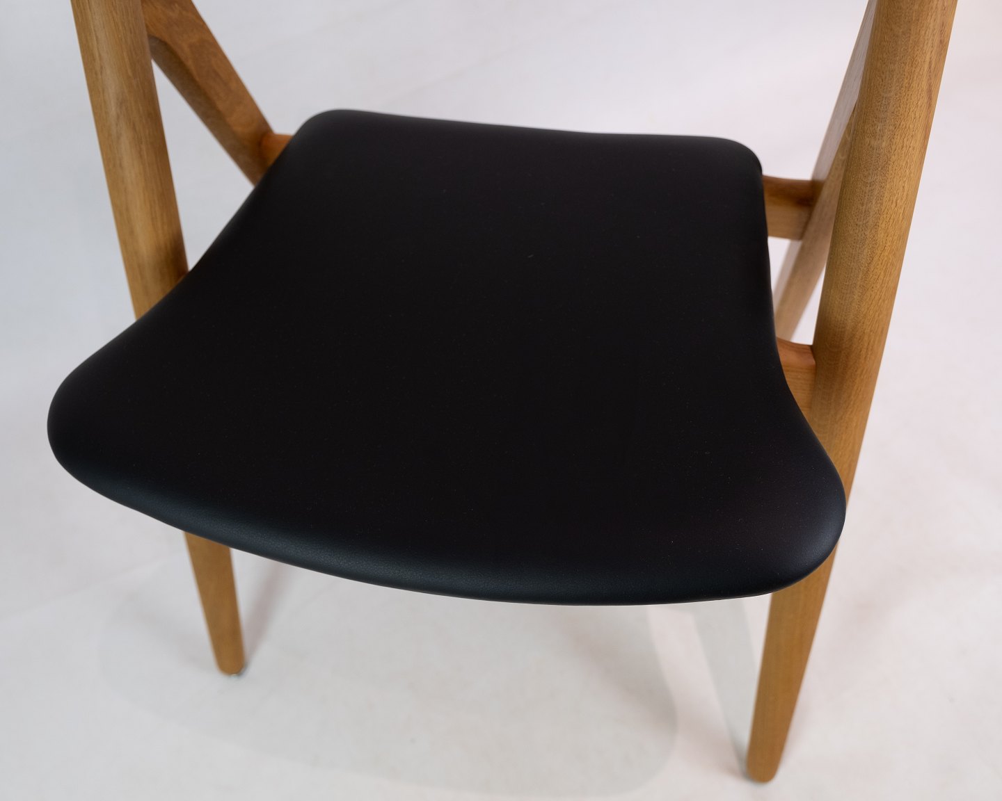 The black leather upholstery gives the chair a sophisticated and elegant look. The leather is a durable and luxurious material that fits perfectly with Wegner's timeless design.