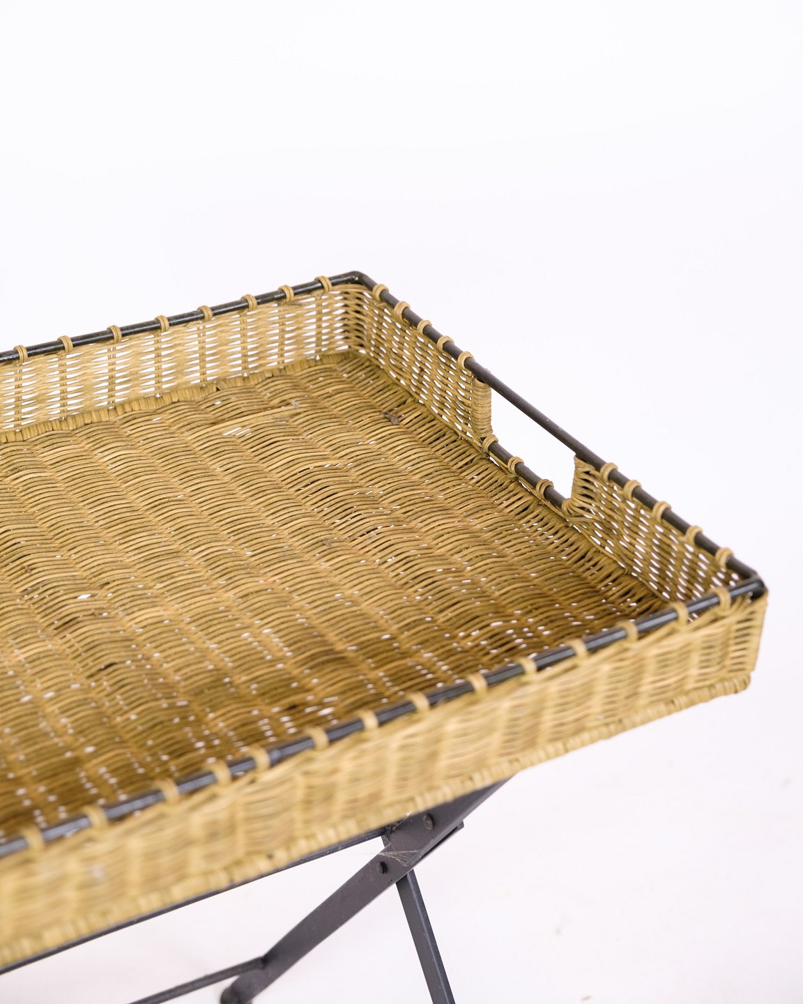 Sidebord med flet bakke og metal ben egner sig særdeles til konsolbord eller blomsterbord på altanen fra omkring 1970'erne