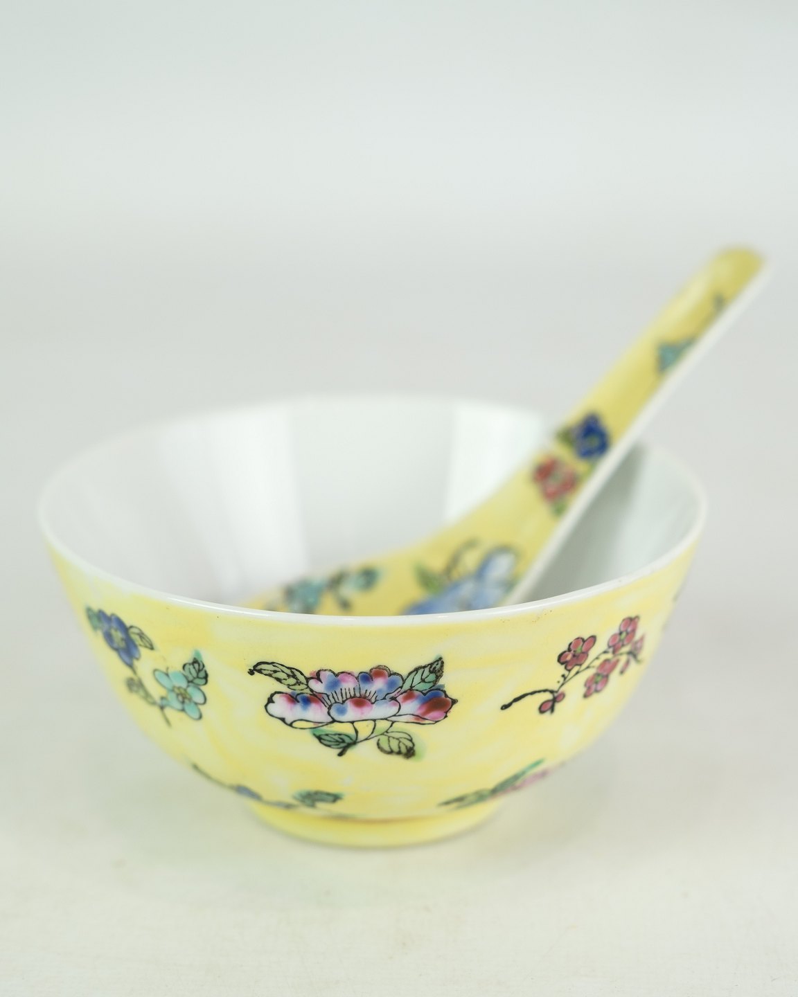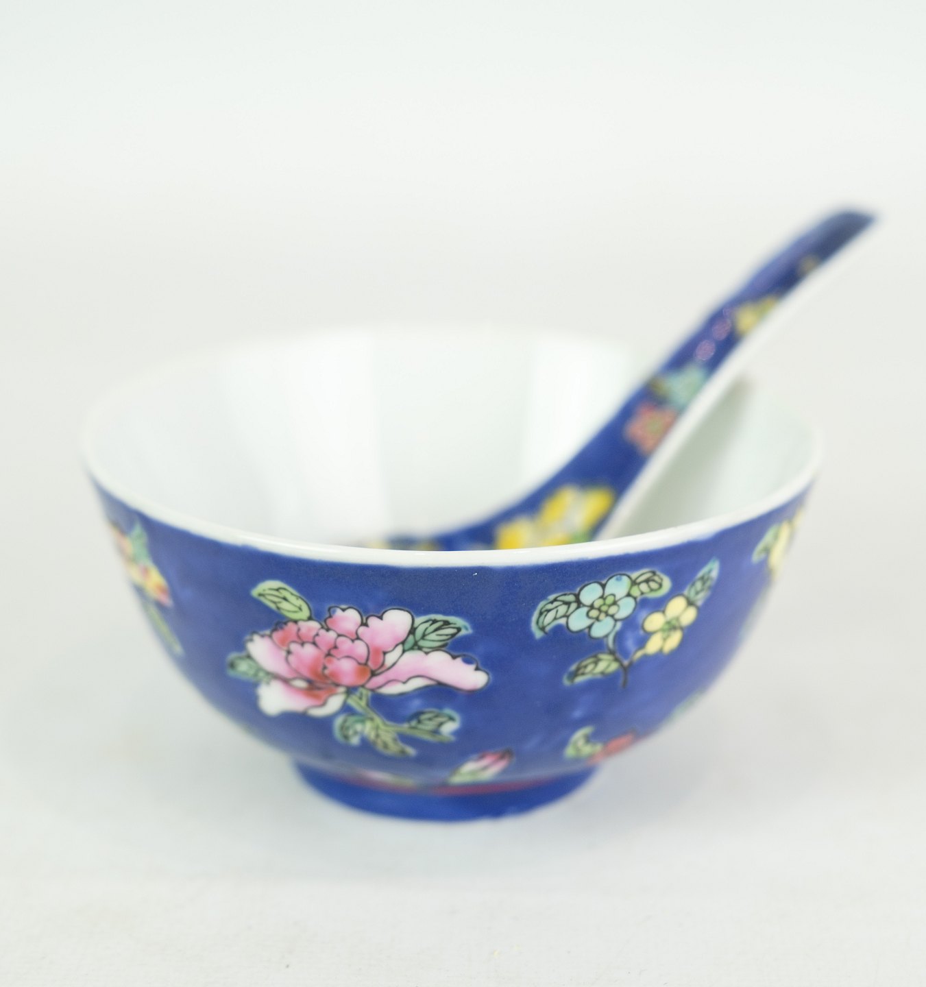 Sæt af fire kinesiske skåle med ske af porcelæn fra omkring år 1930’erne. Sælges kun samlet