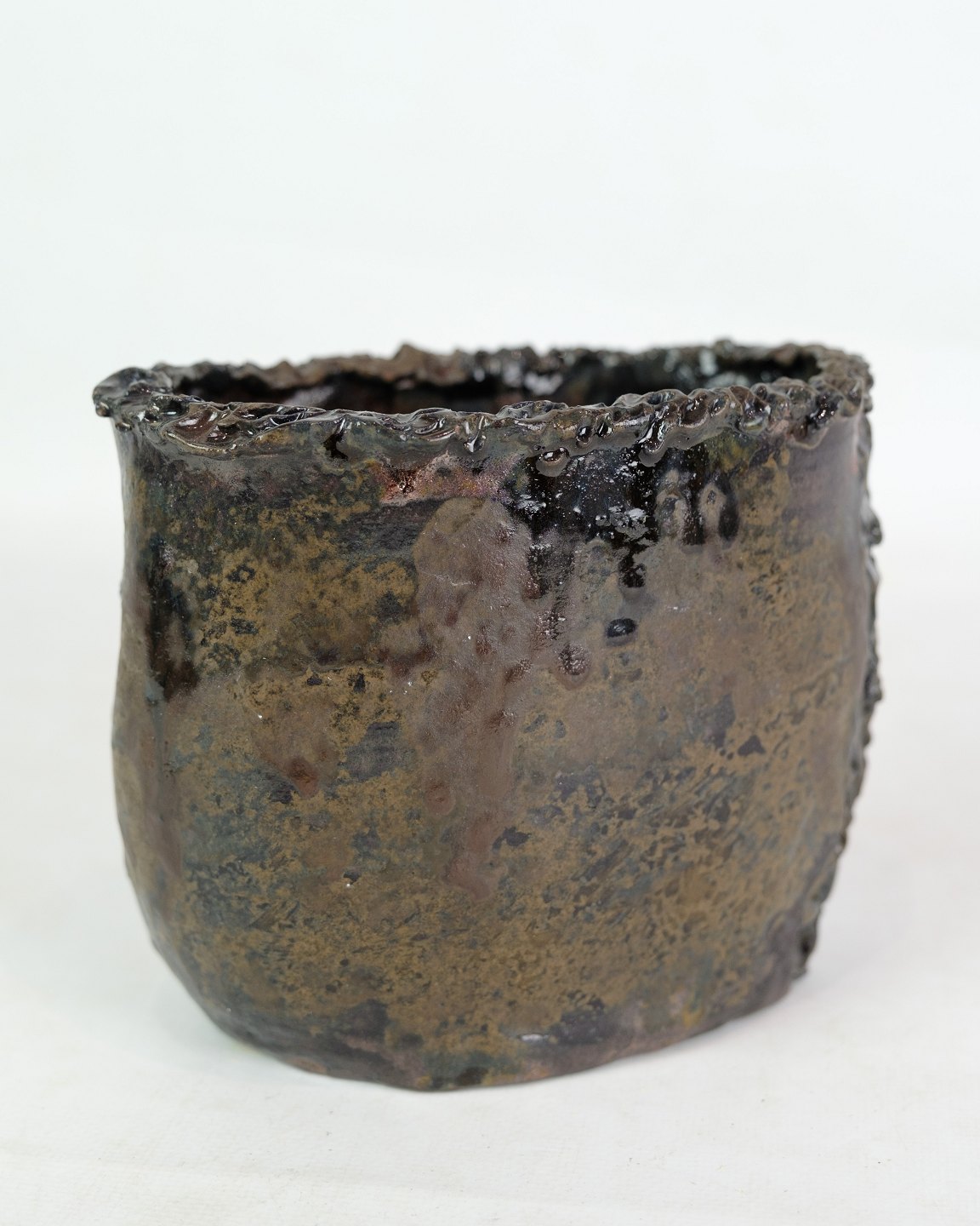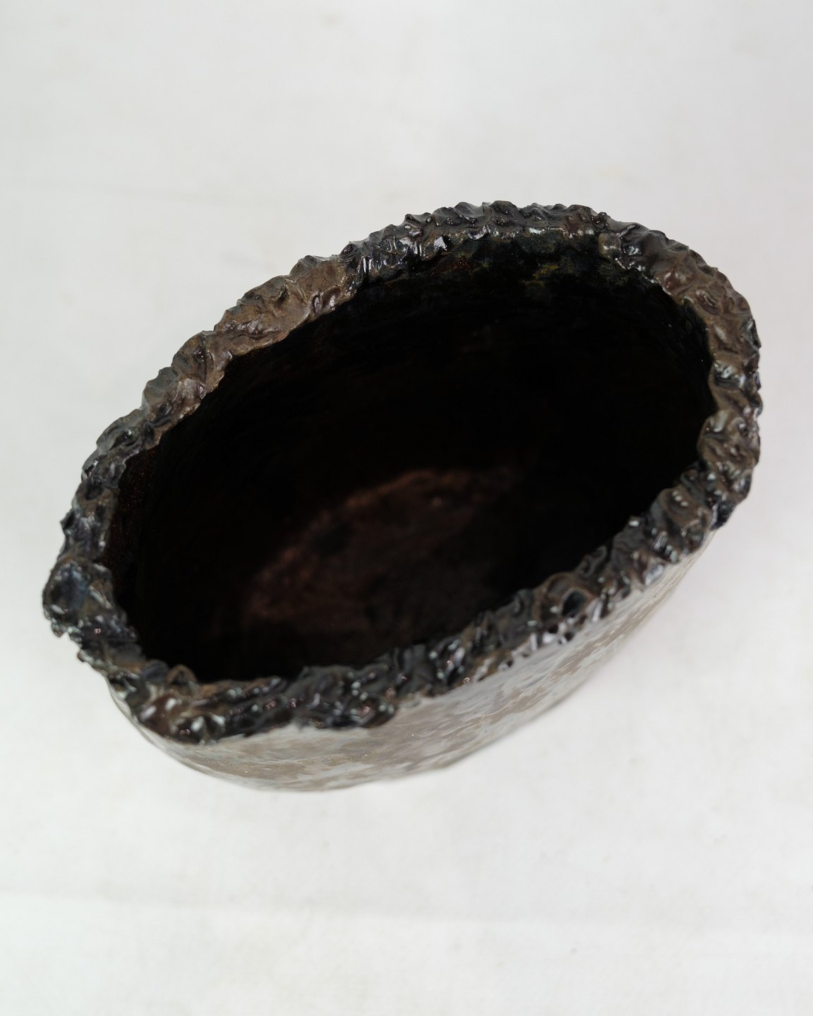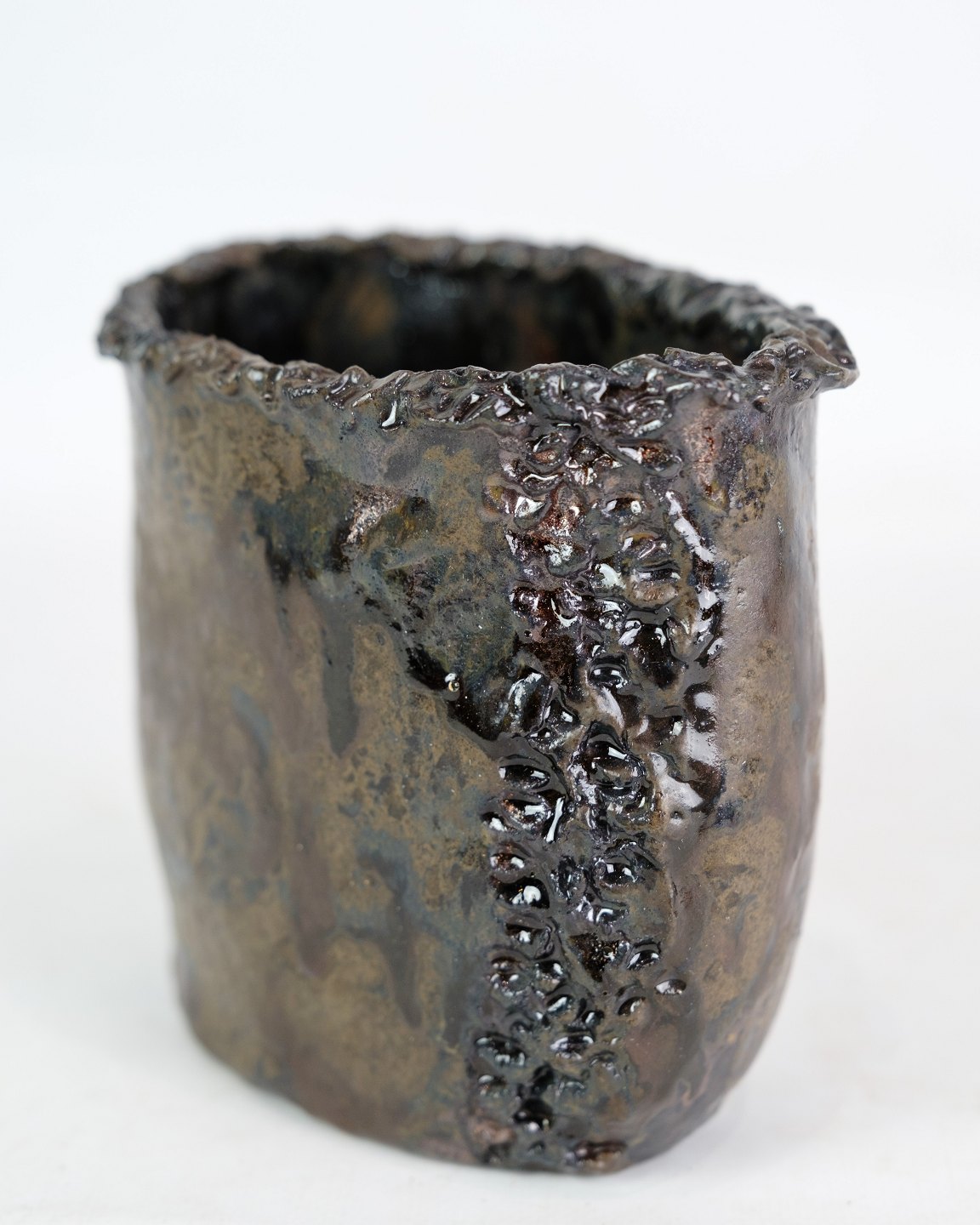 En oval keramik vase med brunlige farver med fin glassur fra omkring år 1960'erne.