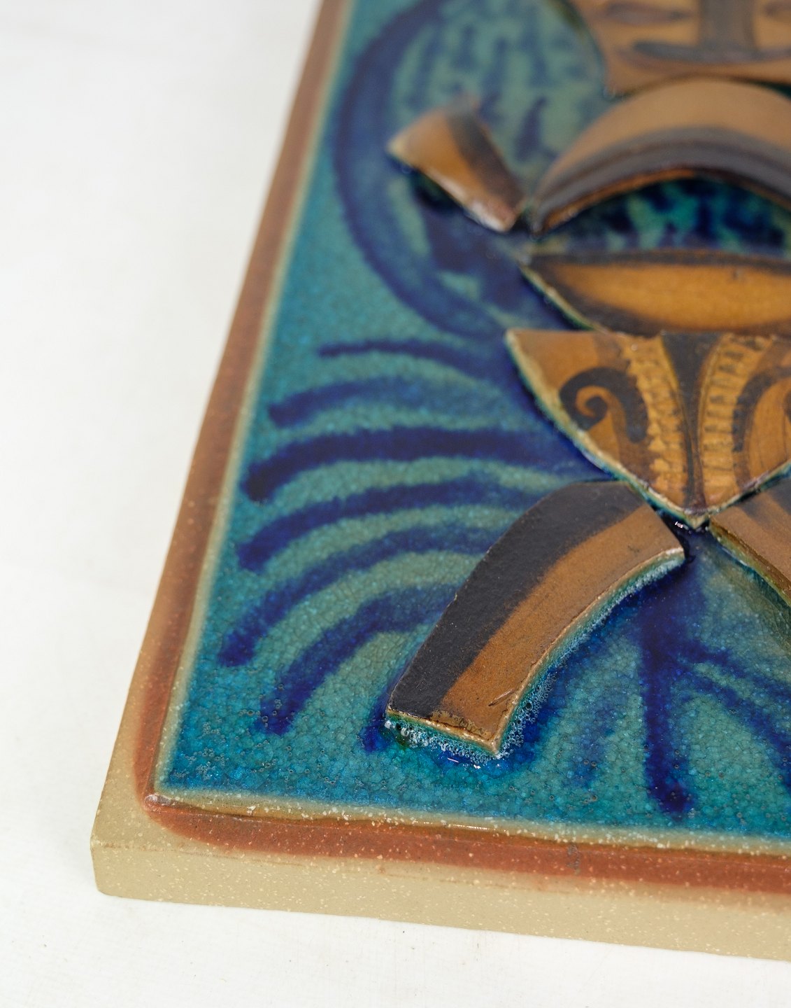 Relief of Søholm ceramics with an African motif with brown and bluish colors from around the 1960s.