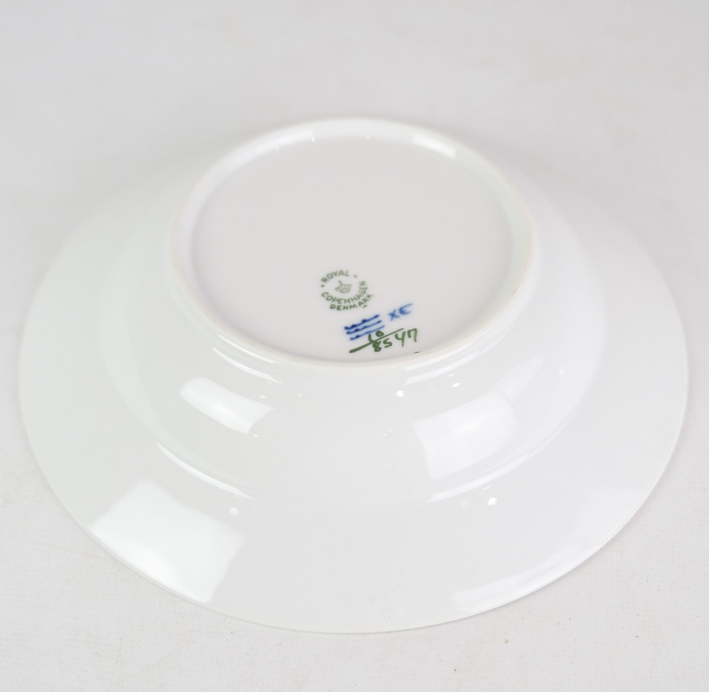 Deep plates by Royal Copenhagen with patterned blue flower edged with production number 10/8547.