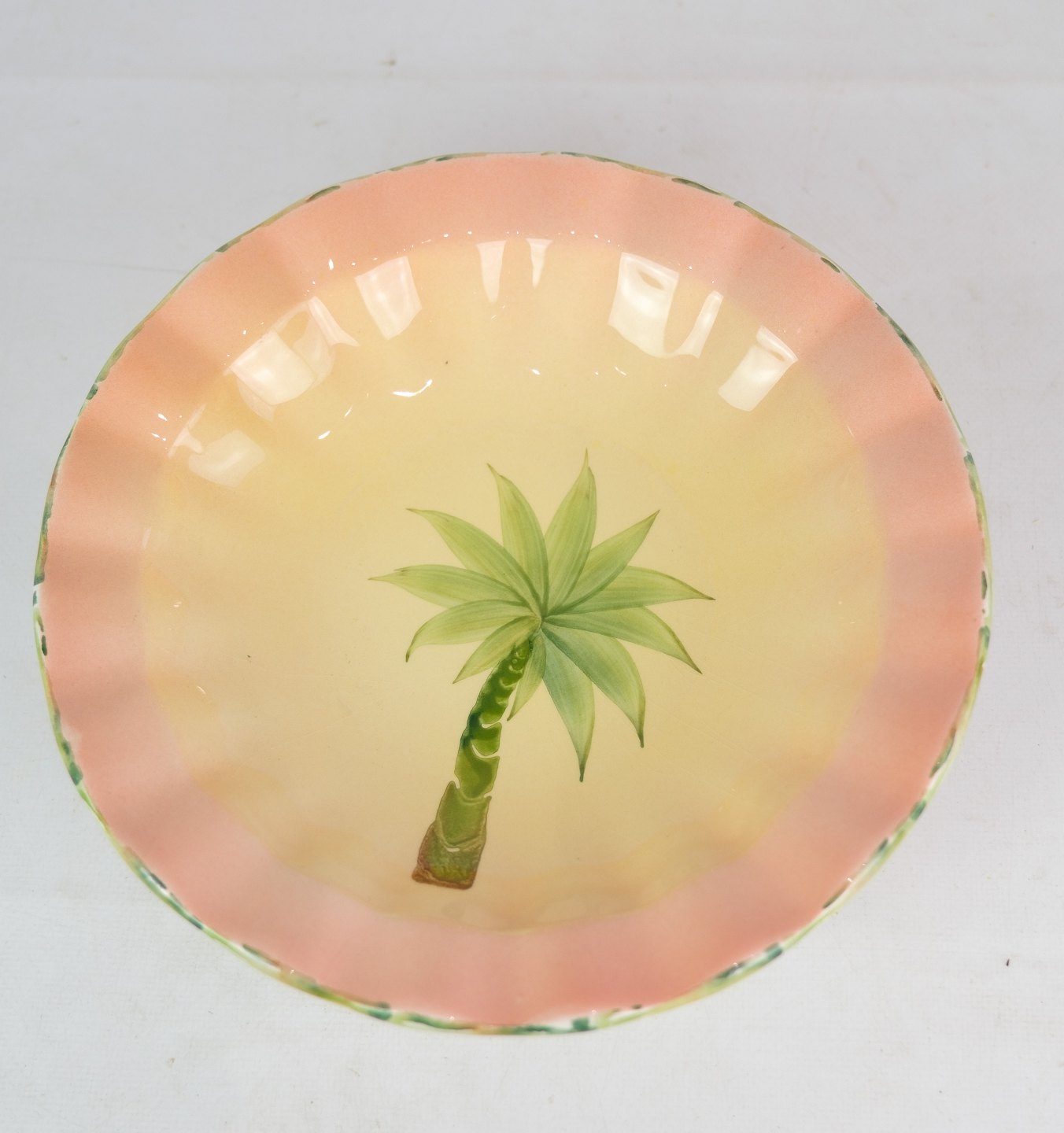 Large pink and sand colored porcelain plate with a motif of a palm tree made in Italy.
