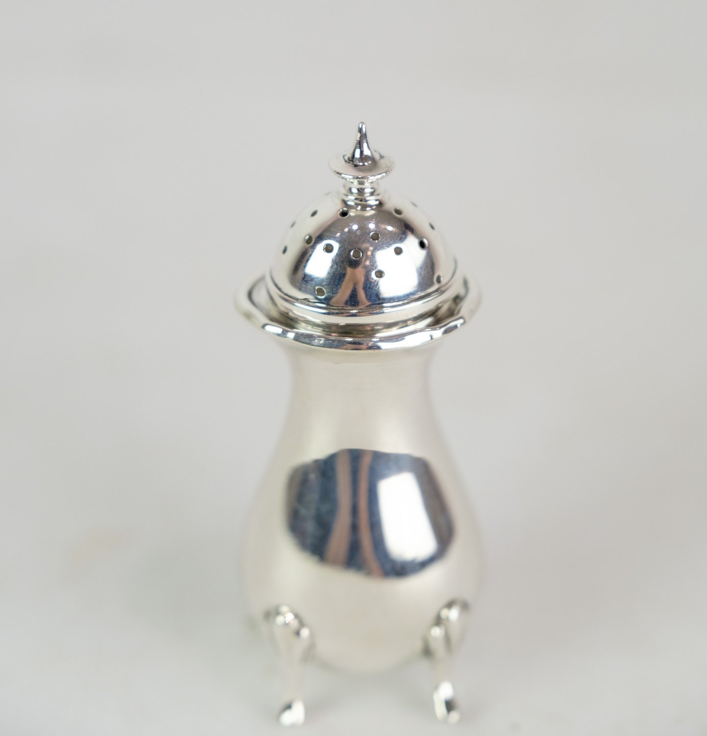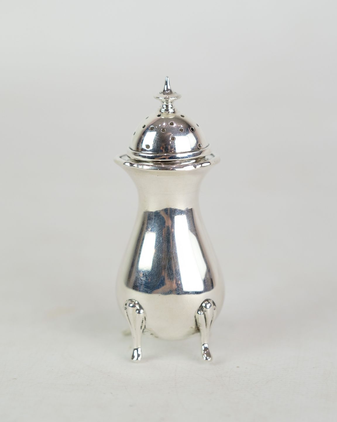 Simple salt shaker on feet, stamped the three tower with master stamps number 16. Weight: 38g