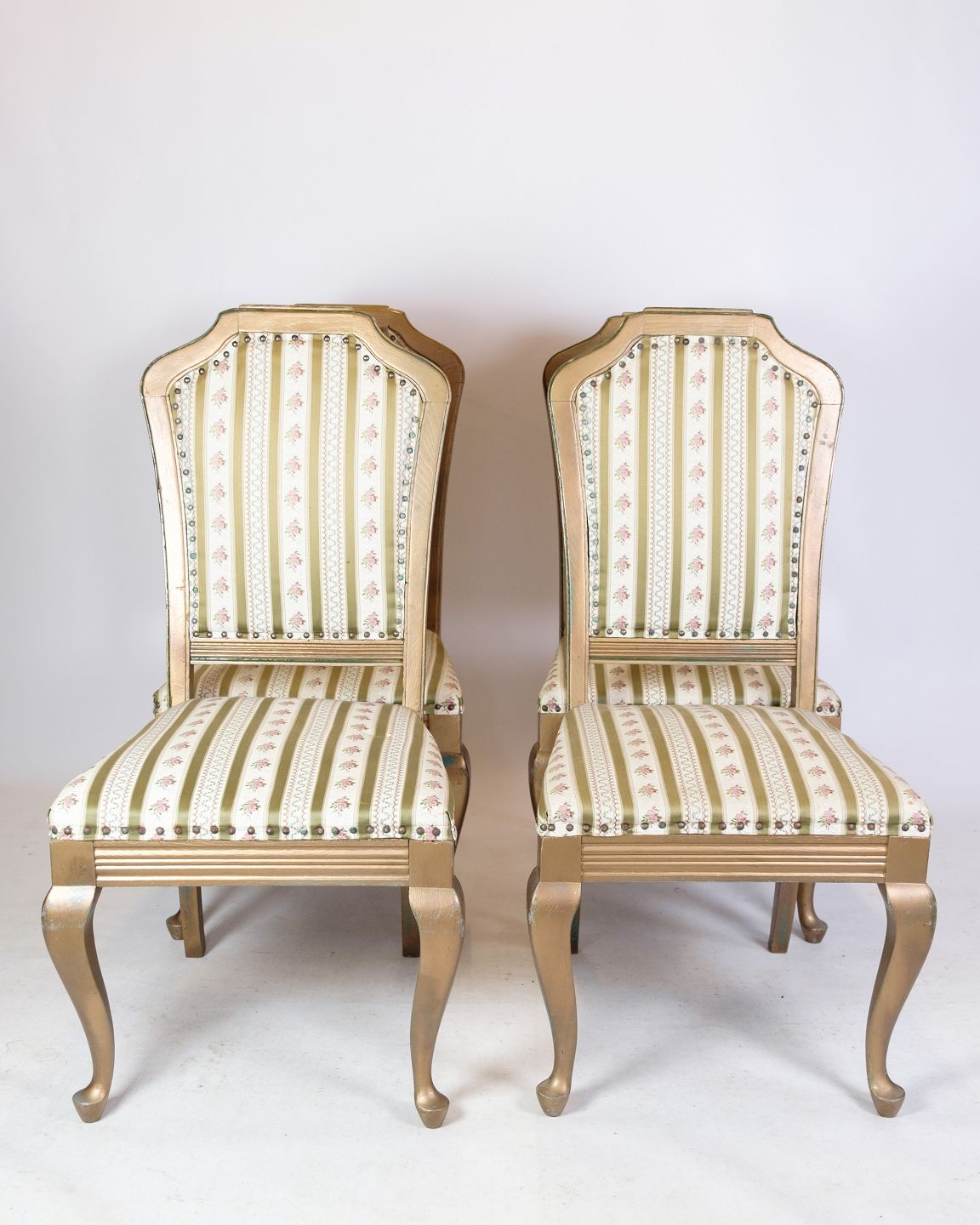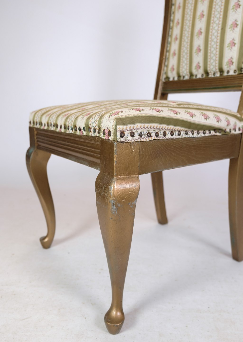 Fire Rococo stole - Forgyldt Træ - Stribet Stof - 1930