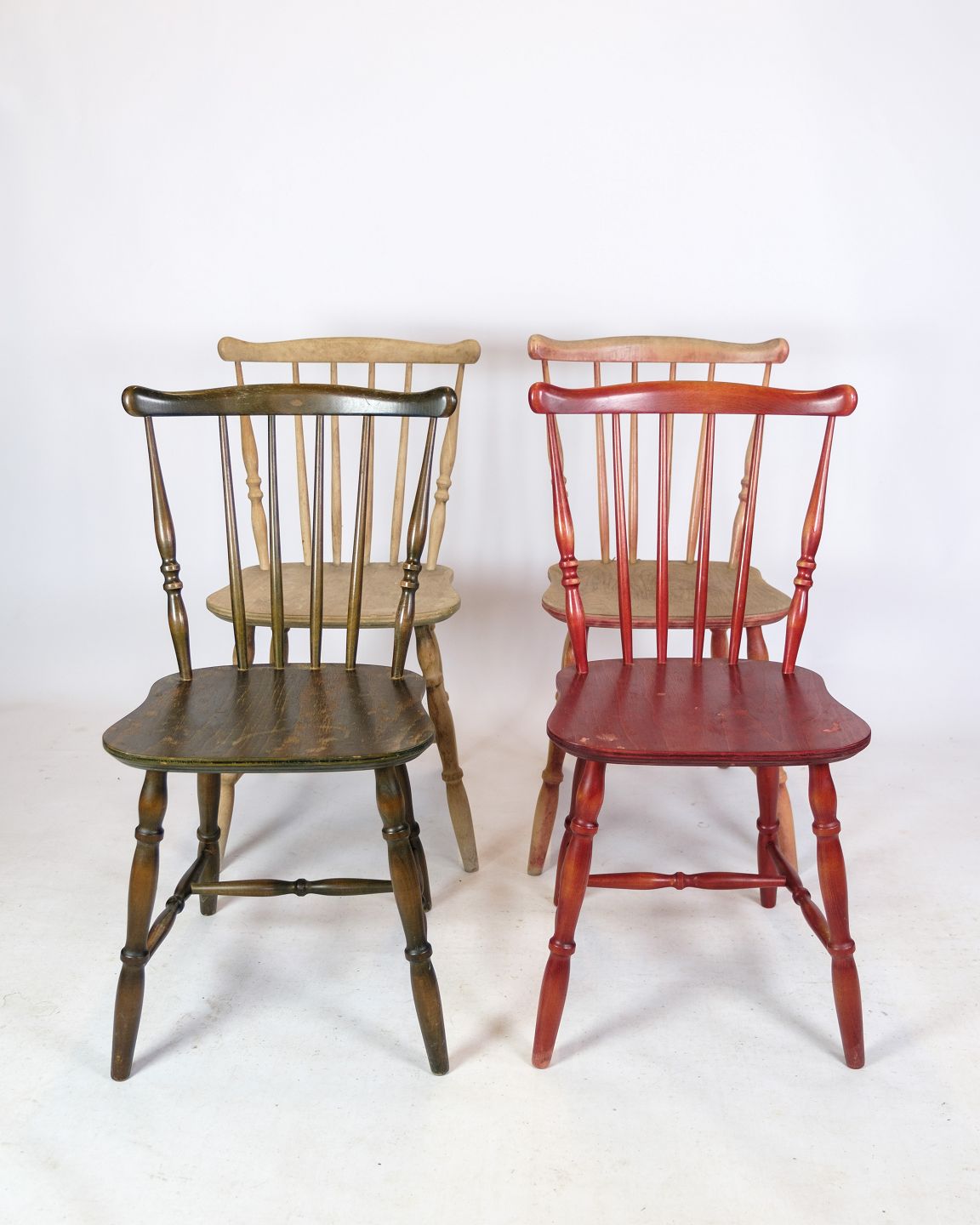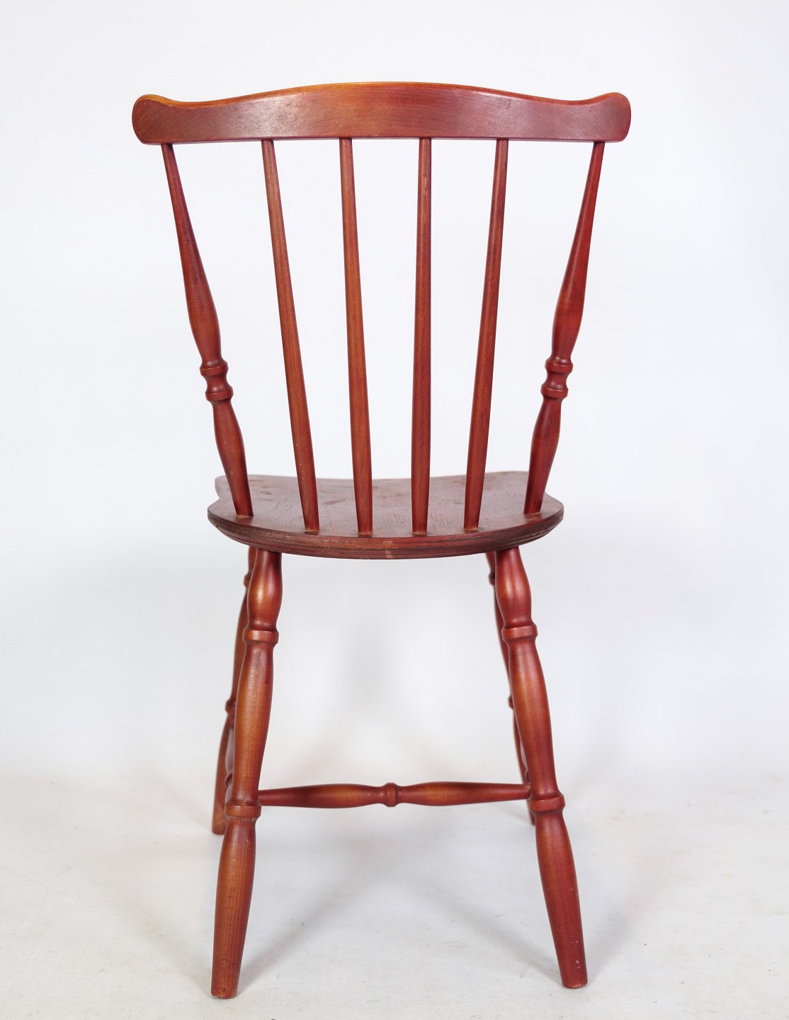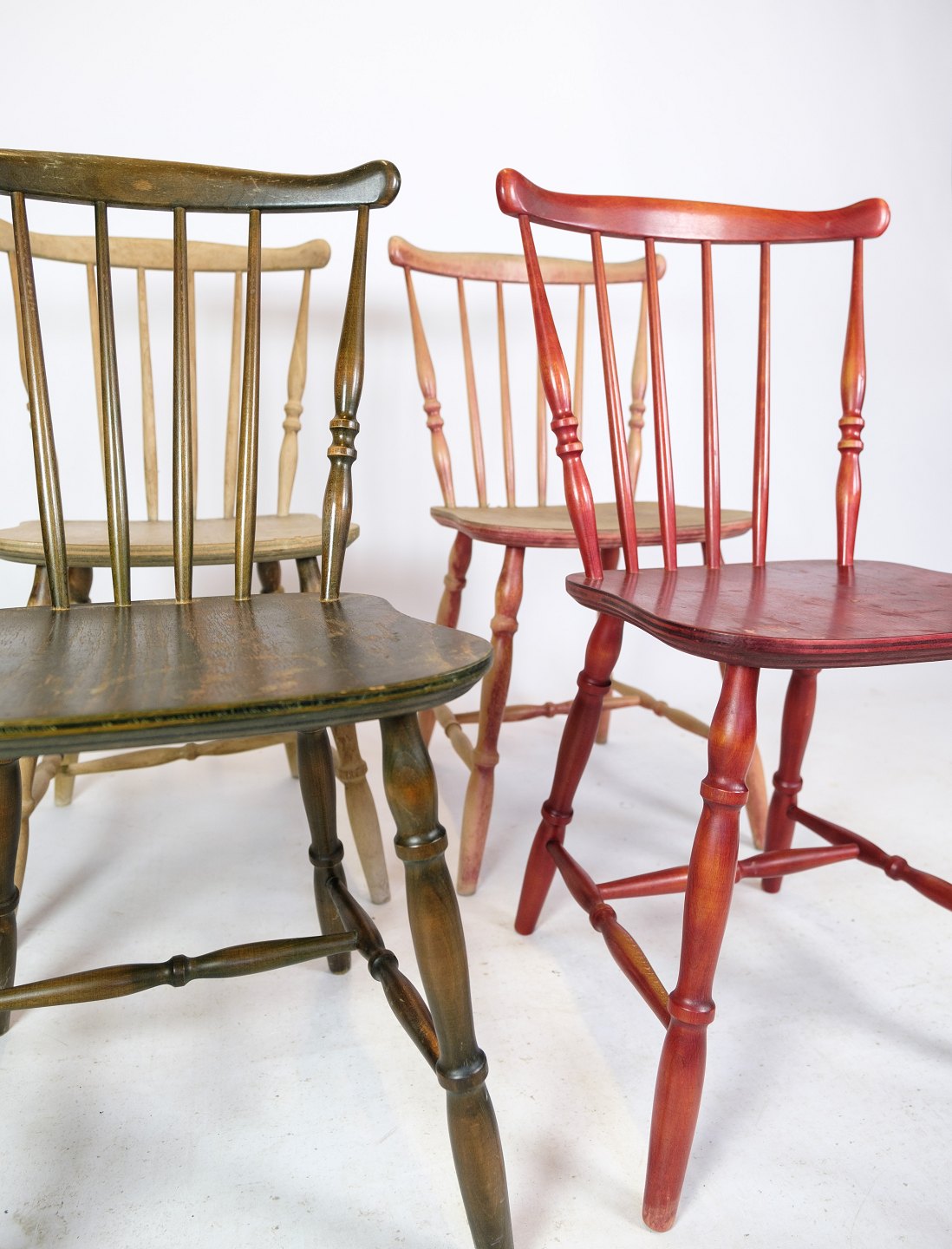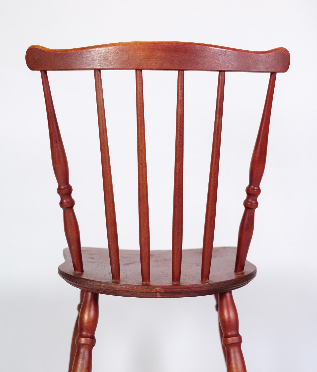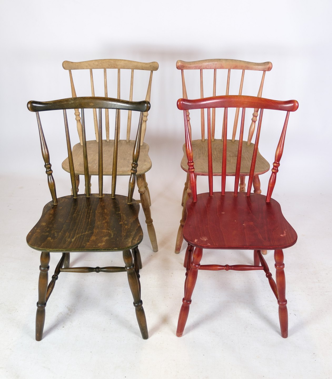 Dining room chairs / Stick chairs in both natural, brown and red colors of Danish design from Farstrup Møbelfabrik from around the 1960s.