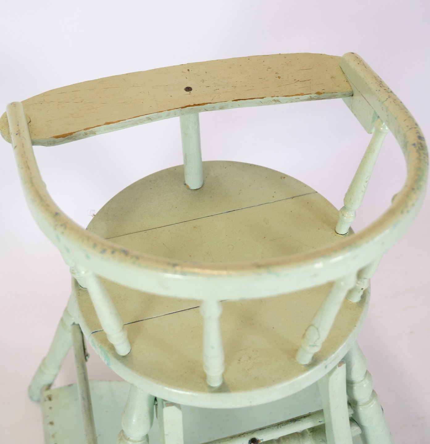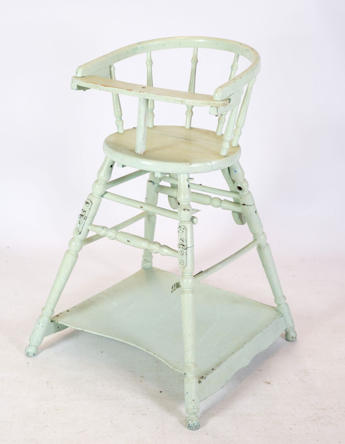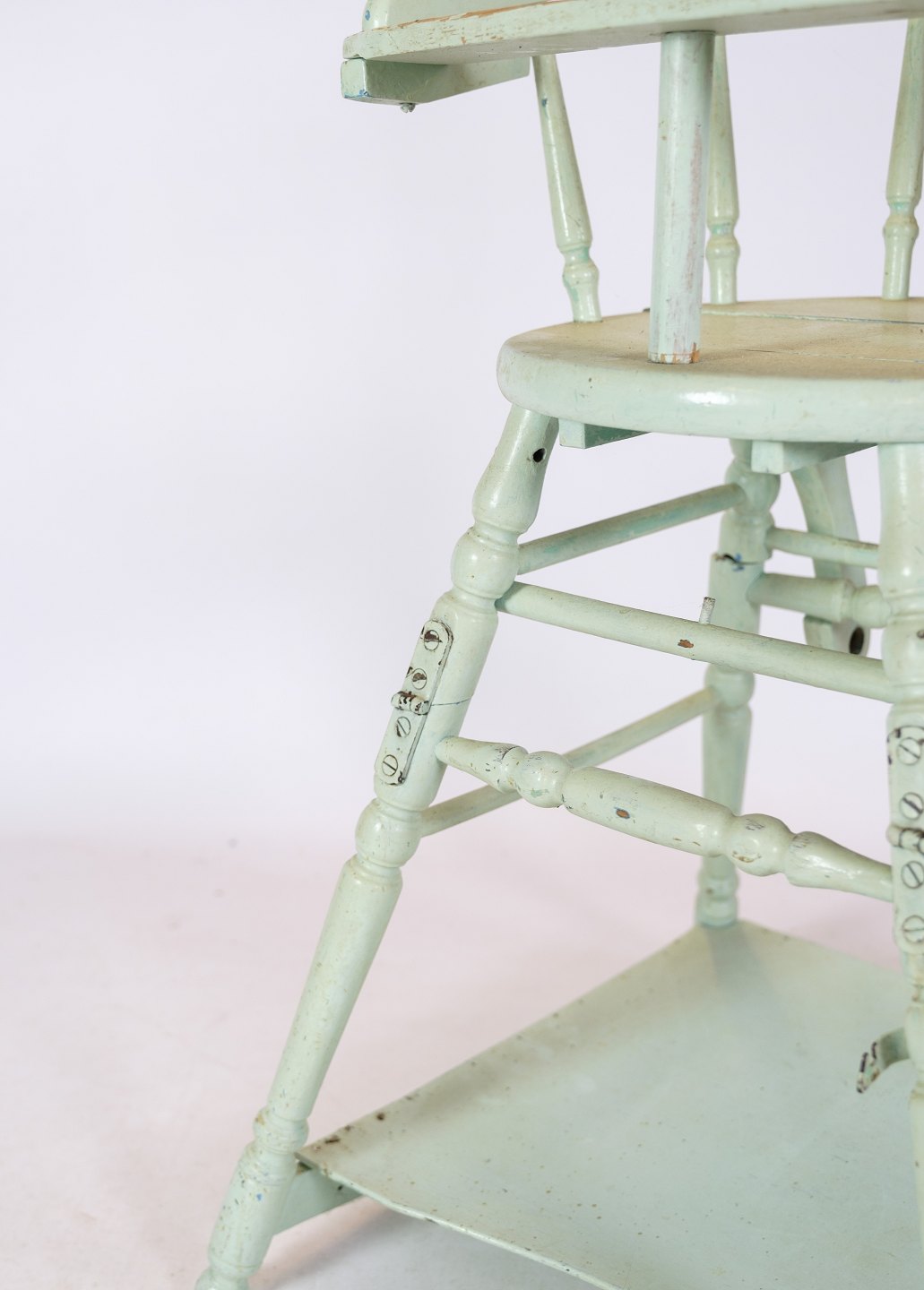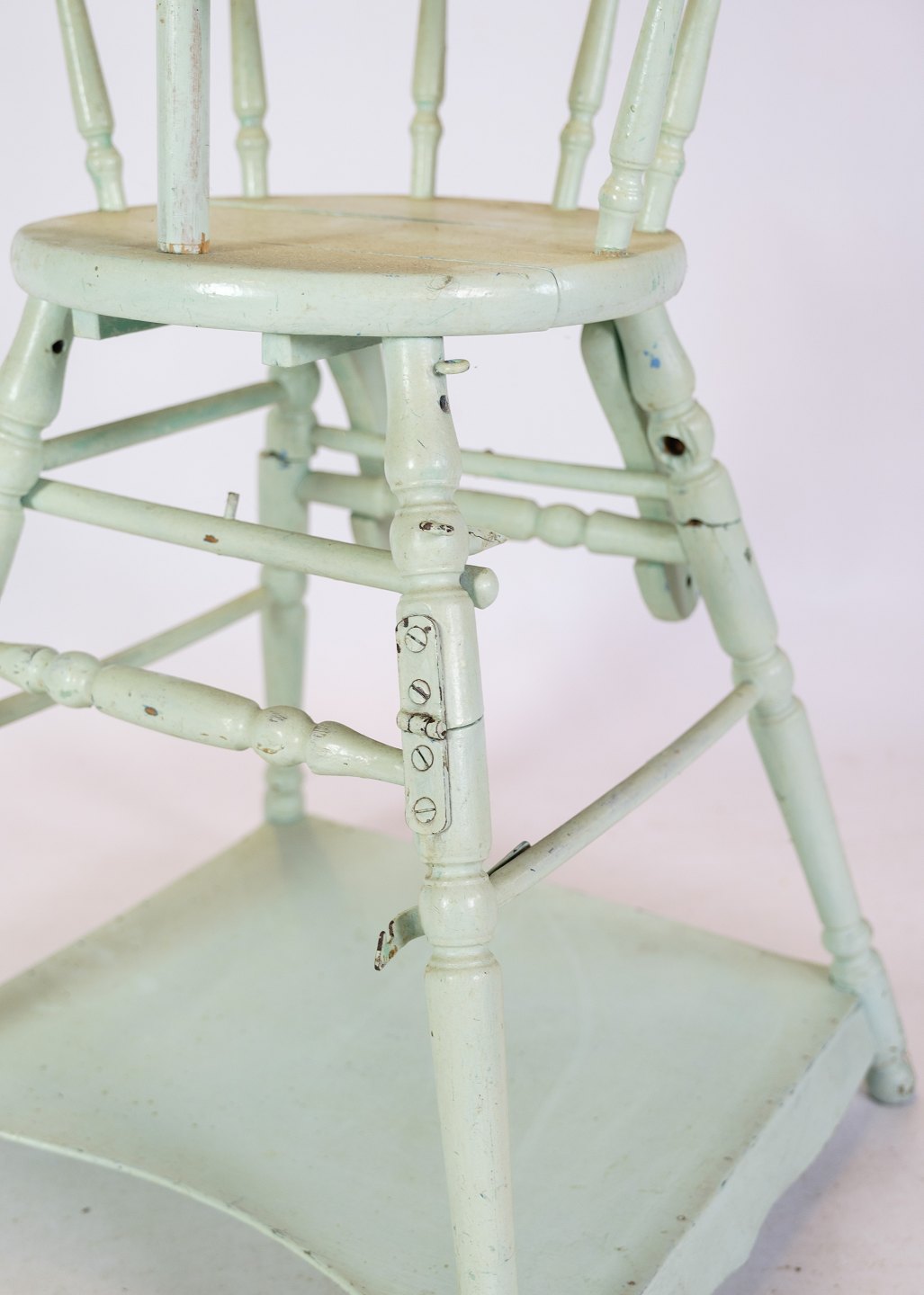 Adjustable children's chair in light blue with patina from around the 1920s.