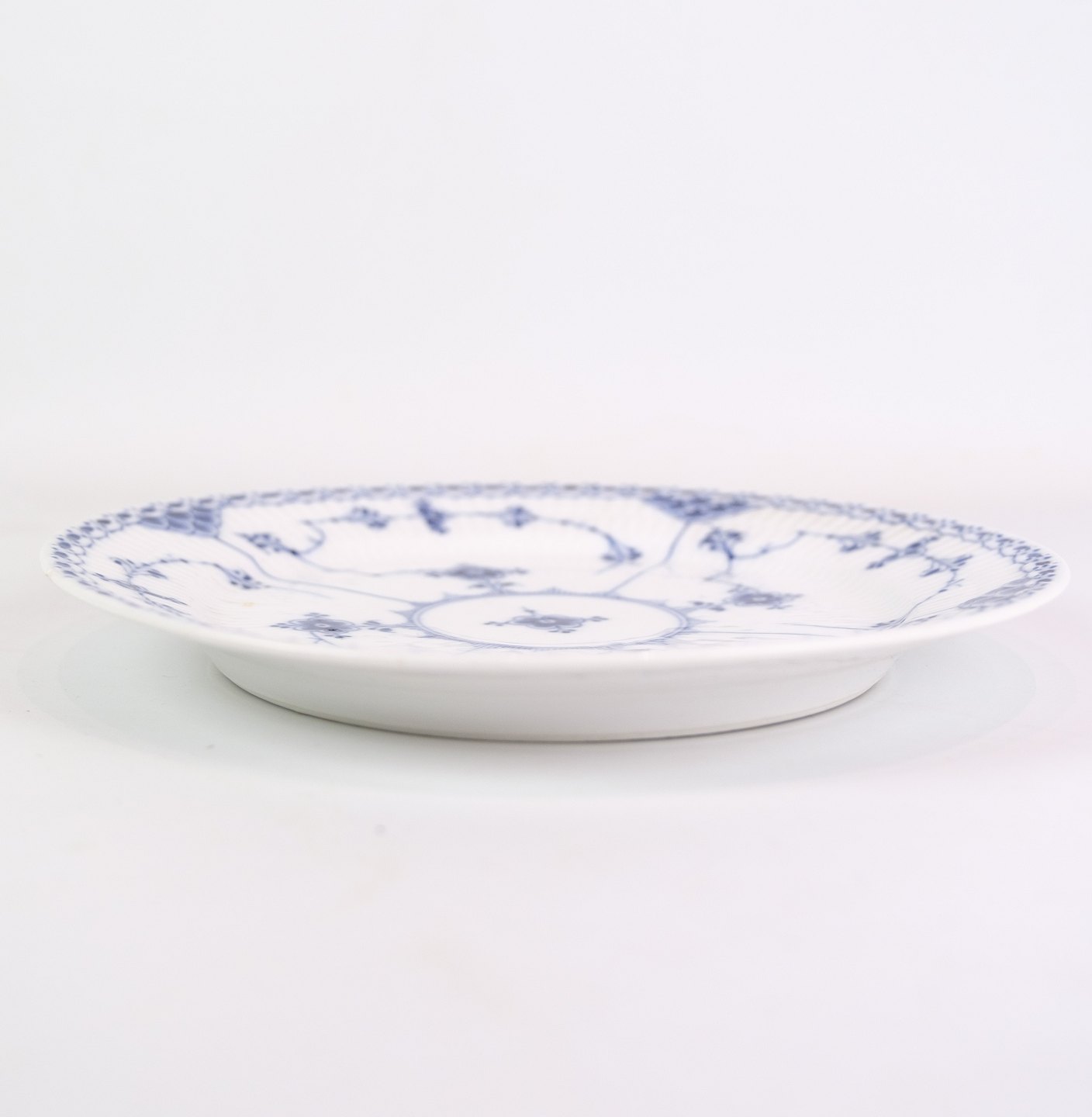 Royal Copenhagen's Musselmalet Riflet Serveringsfad med nummer 1/100 er et elegant og tidløst stykke porcelæn, der tilføjer en fornemmelse af tradition og skønhed til din borddækning.