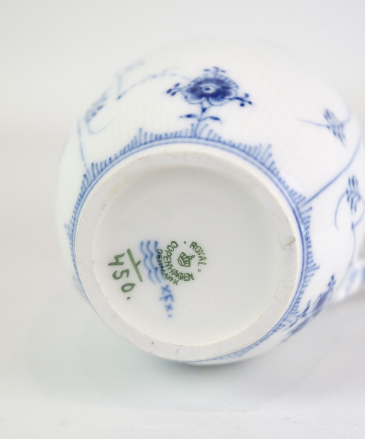 SoldRoyal Copenhagen Musselmalet Fluted 450-1 milk jug is a classic and charming piece of porcelain that brings timeless elegance to your table.