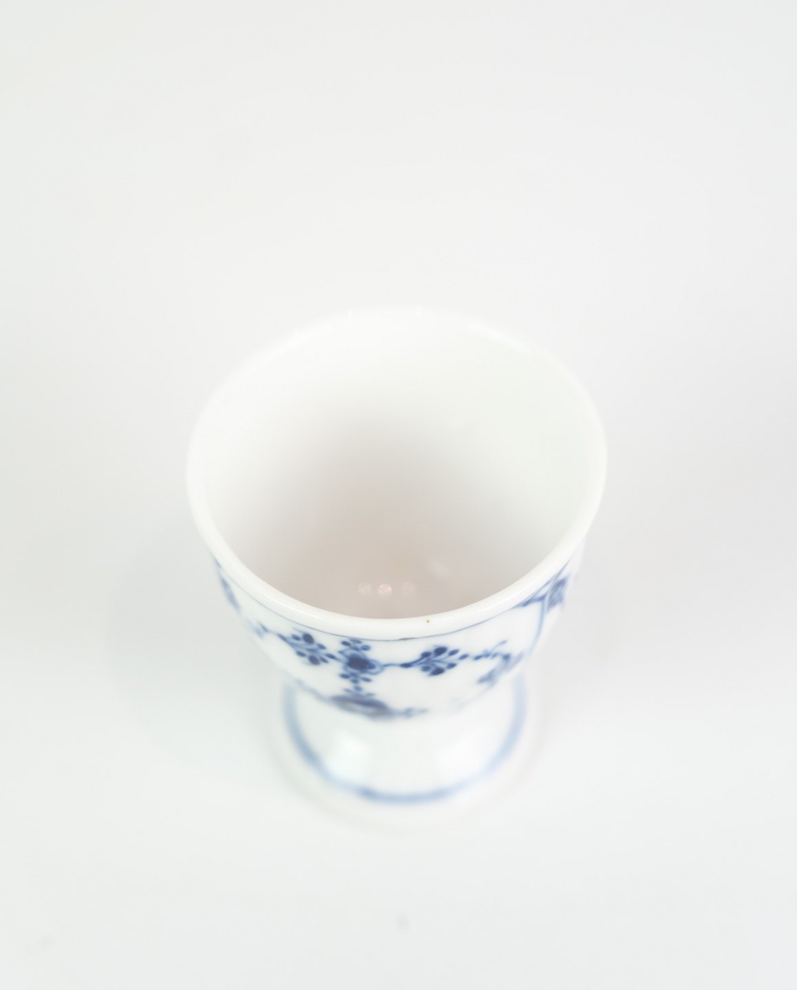 The mussel painted fluted pattern, iconic to Royal Copenhagen, is hand painted on this egg cup and adds a timeless beauty to your breakfast or brunch. The delicate blue pattern that adorns the cup brings a sense of tradition and Danish culture to the table.