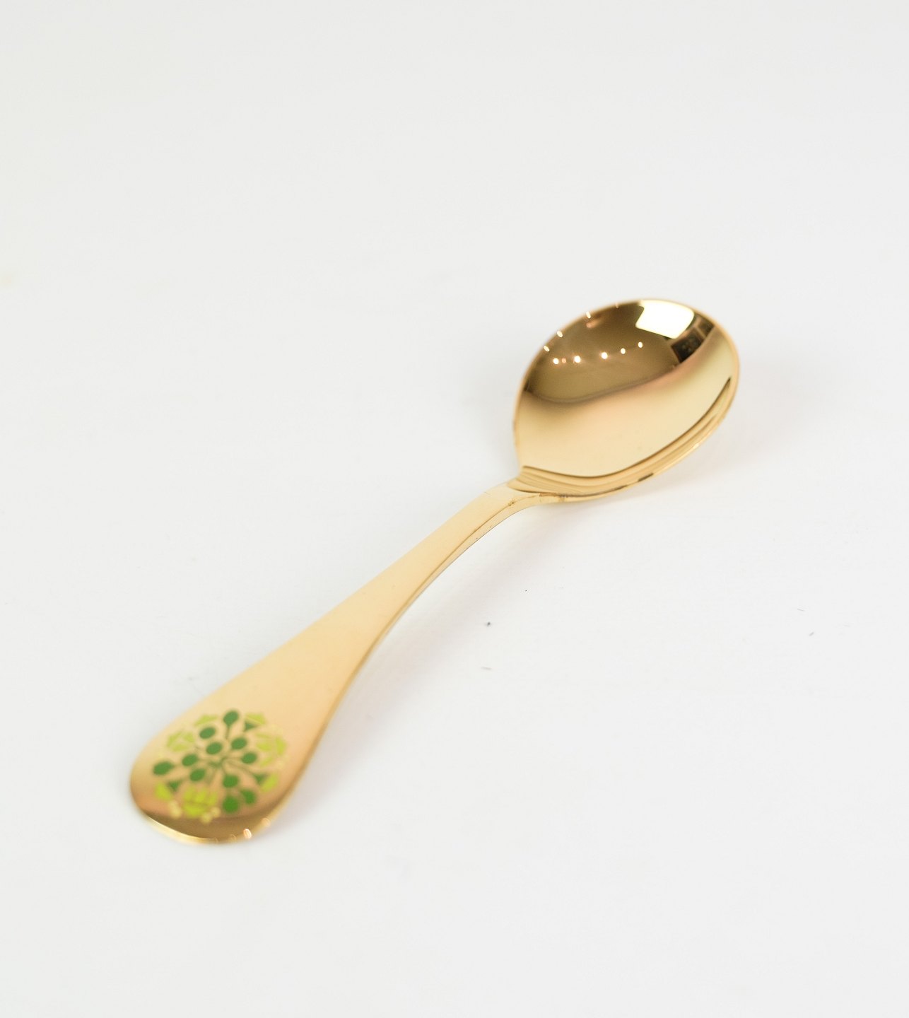 Georg Jensen Årsske i årgang 1989 af forgyldt sterling sølv med emajle af grønt blomster motiv