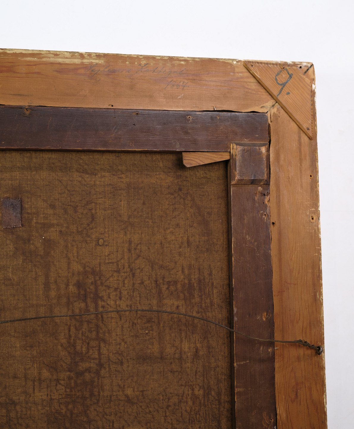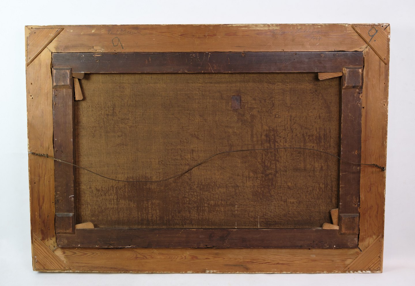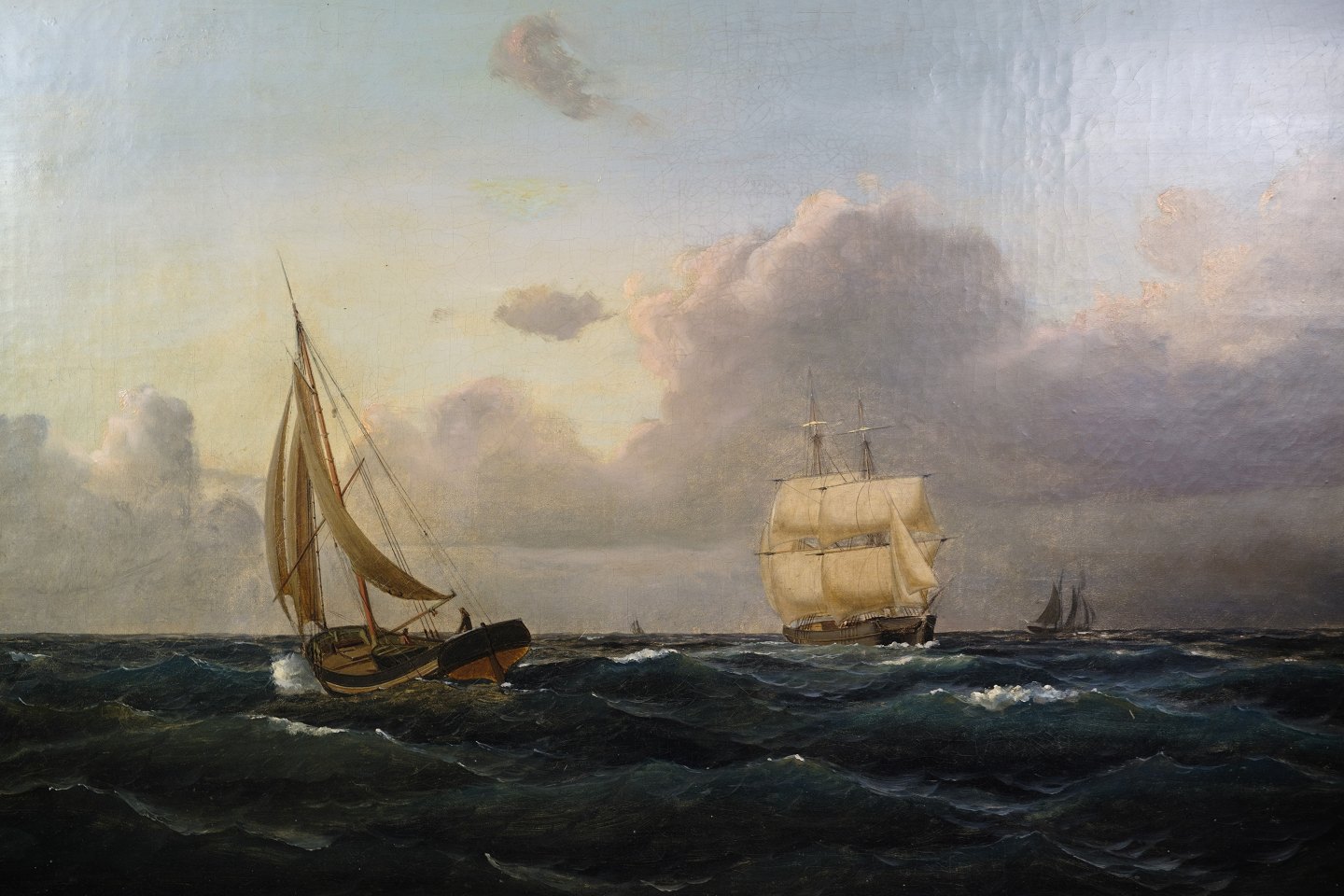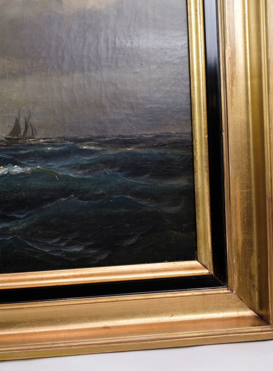 SoldOil painting with motif of sea and boats in a frame with gold leaf by Carl Olsen (1818-1878).