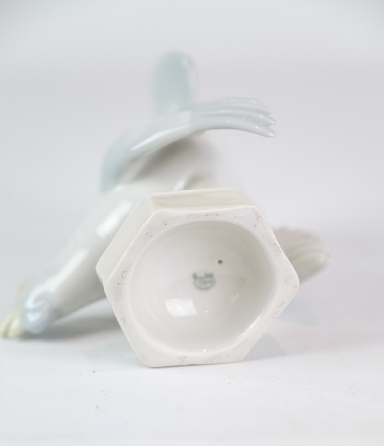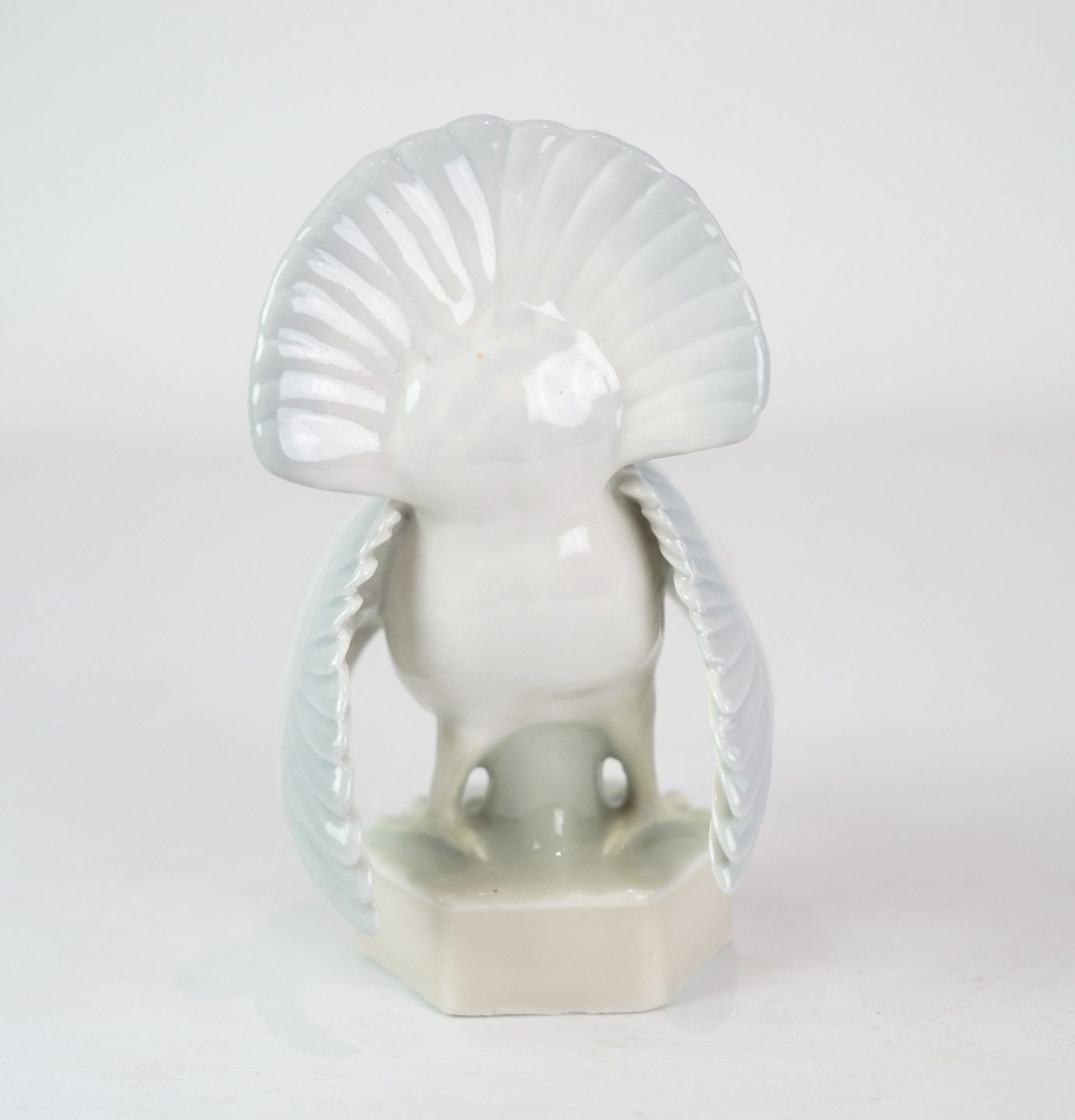 Figur af porcelæn med motiv af en rovfugl på vej til at flyve efter sit bytte.