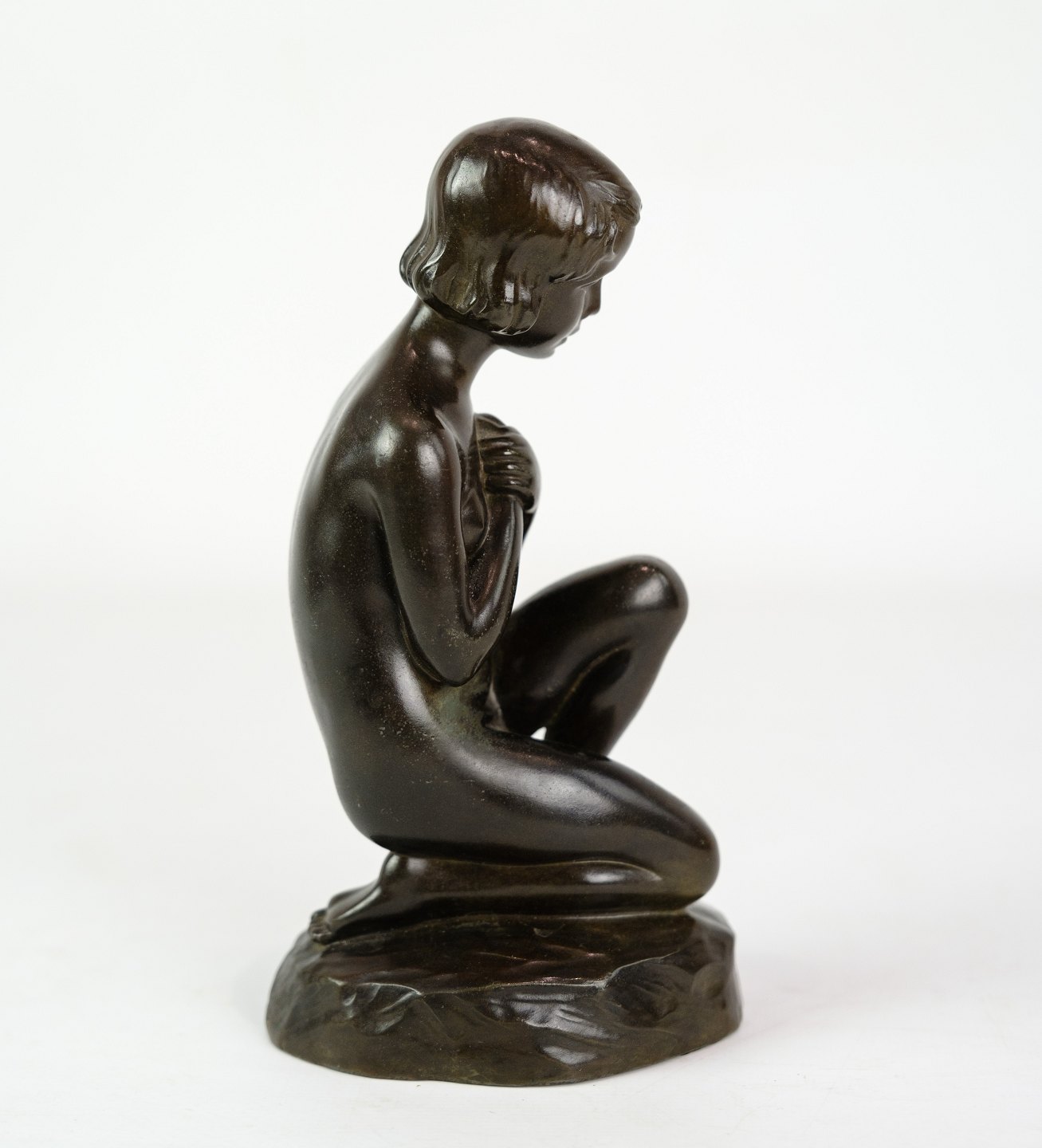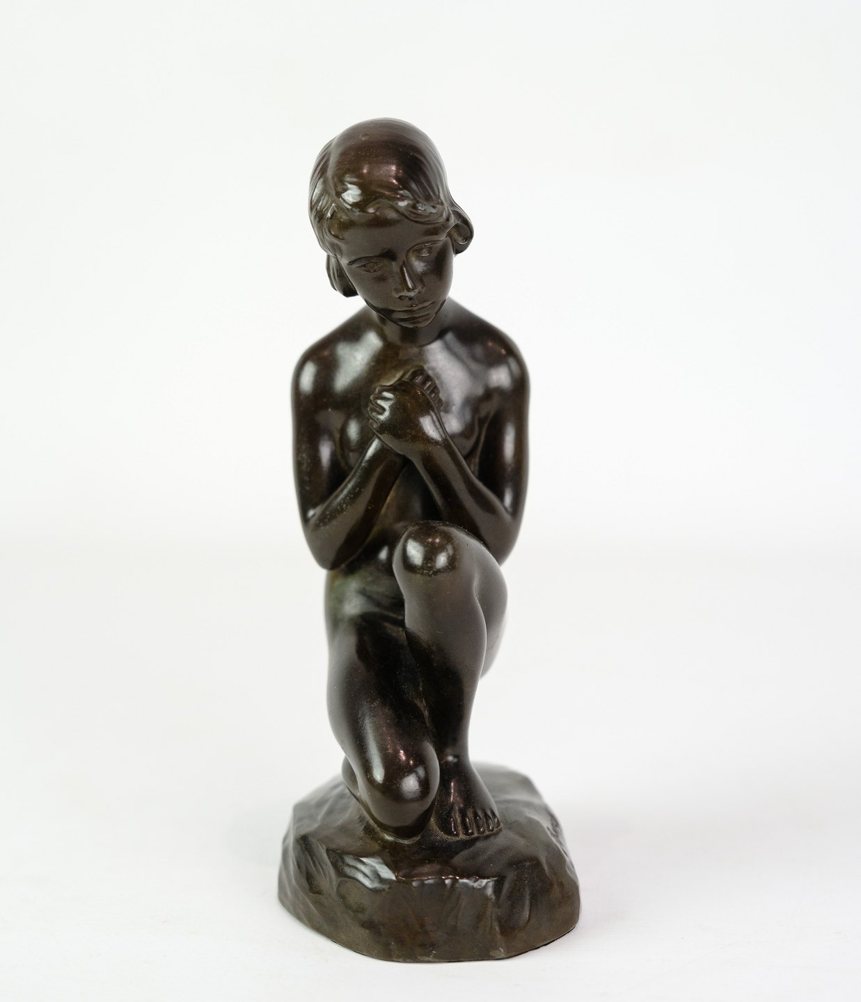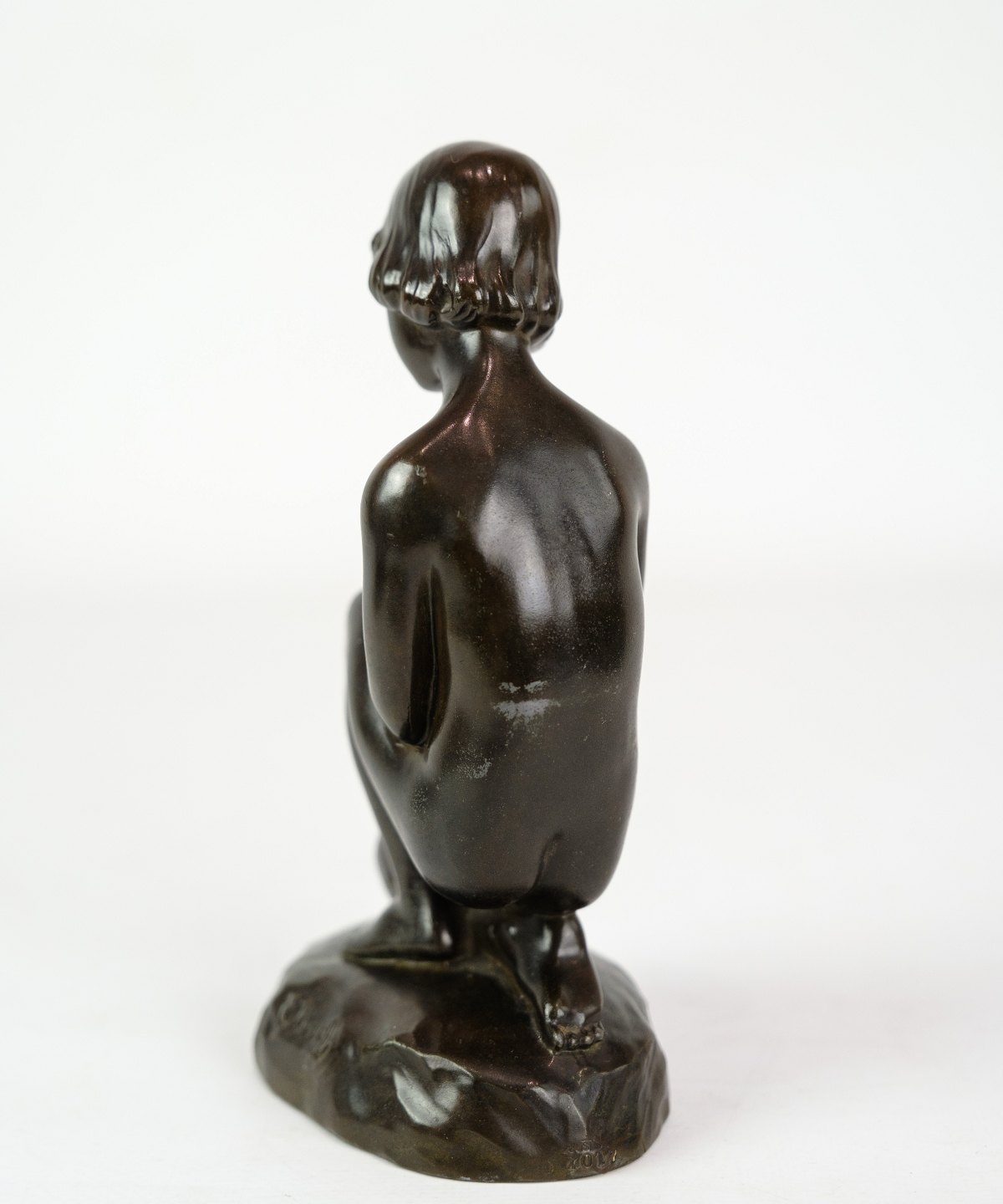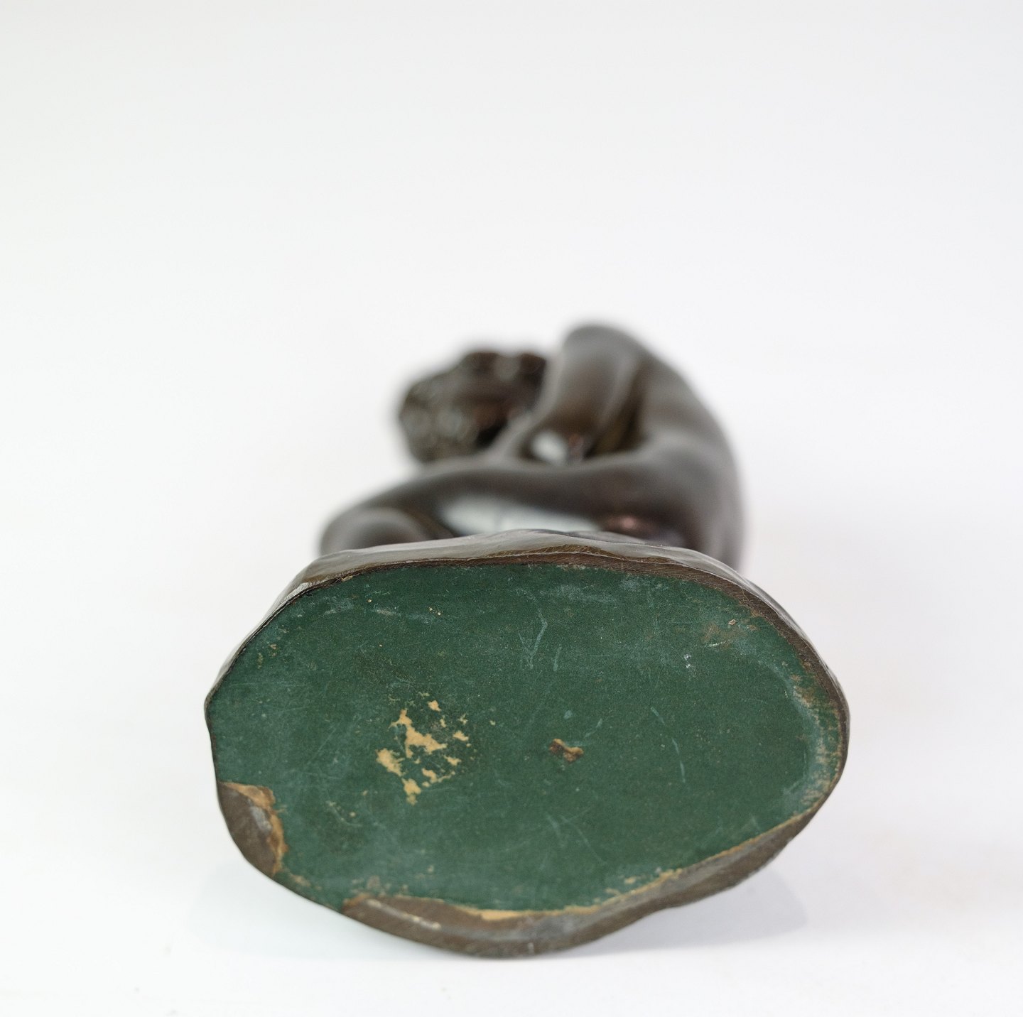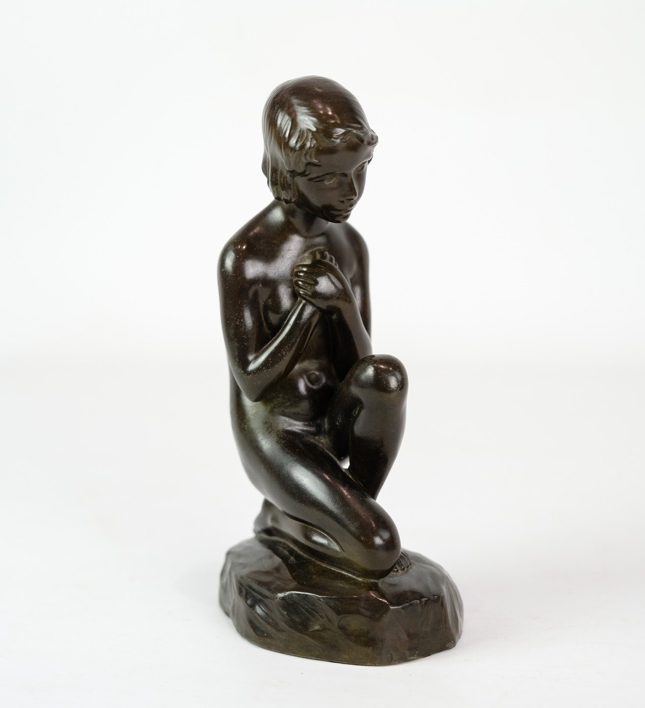 A figure of Just Andersen made by Discometal with a brown patina is probably an example of his artistic sculptures. Discometal was an alloy consisting of zinc and other metals, and it gave his works their characteristic appearance and durability.