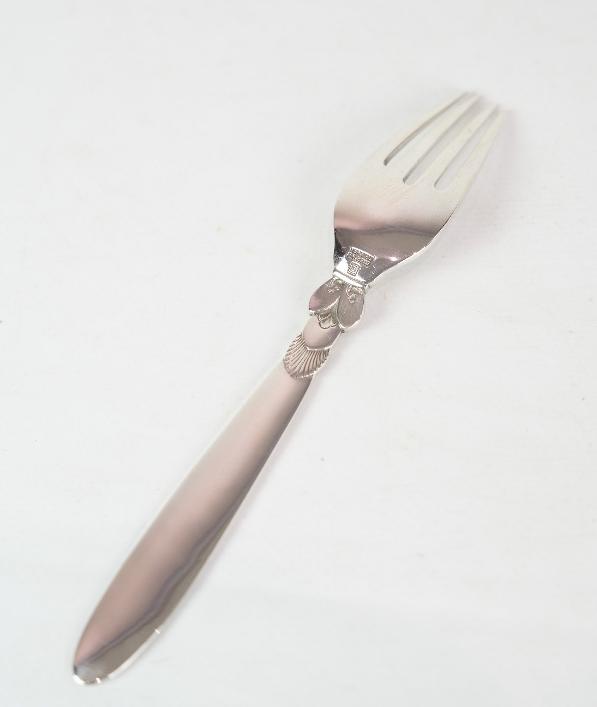 Frokostgaffel i mønstret kaktus, designet af Georg Jensen. Stemplet Sterling Danmark