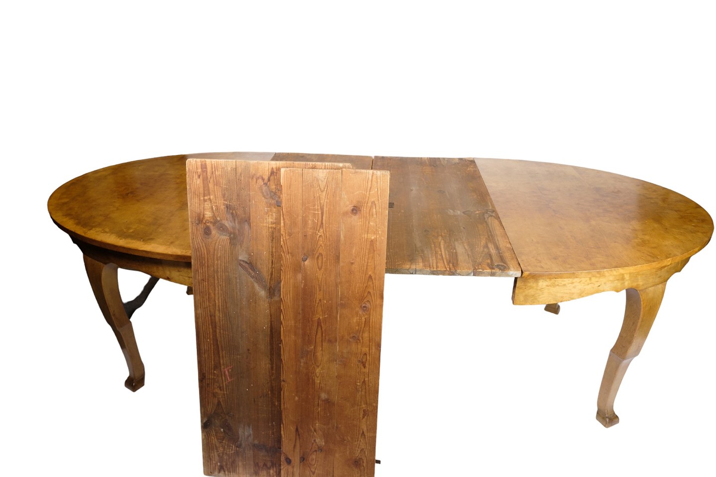SoldDining table with additional plates made of birch wood from around the 1920s.
