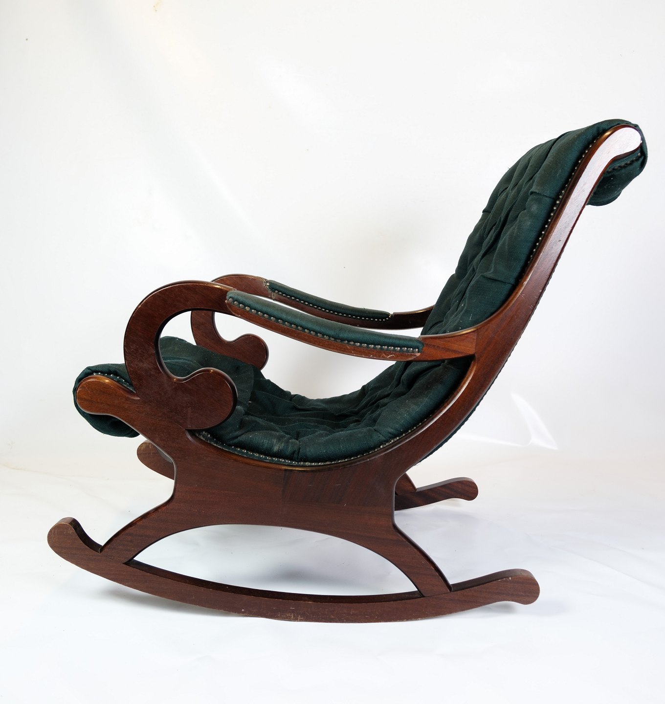 Rocking chair with green wool tuft made in mahogany from around the 1930s.