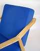 Hynderne, der er beklædt med blåt stof, tilføjer en ekstra dimension af komfort og stil til gyngestolen, samtidig med at de skaber en smuk kontrast til træets varme farver.
