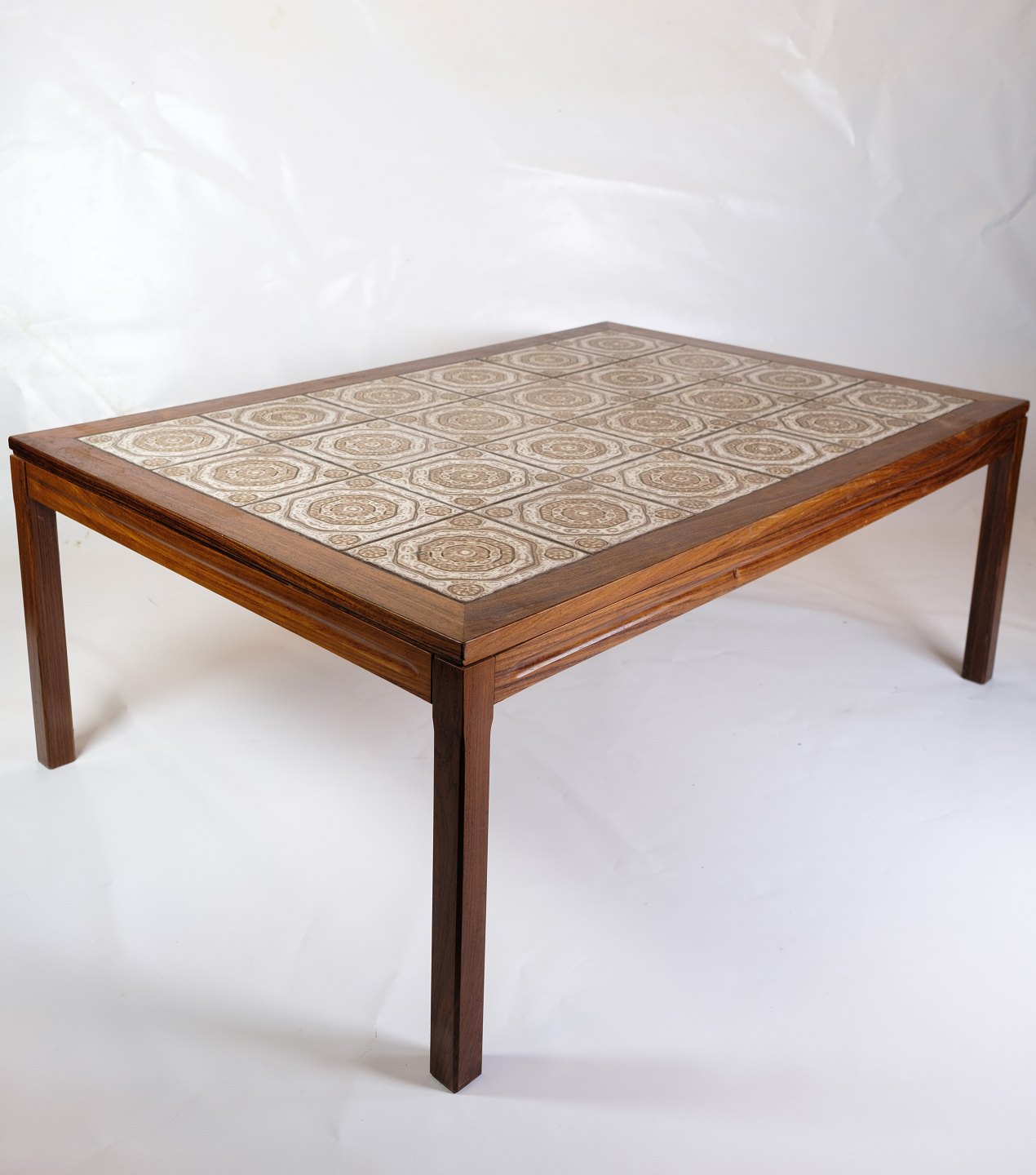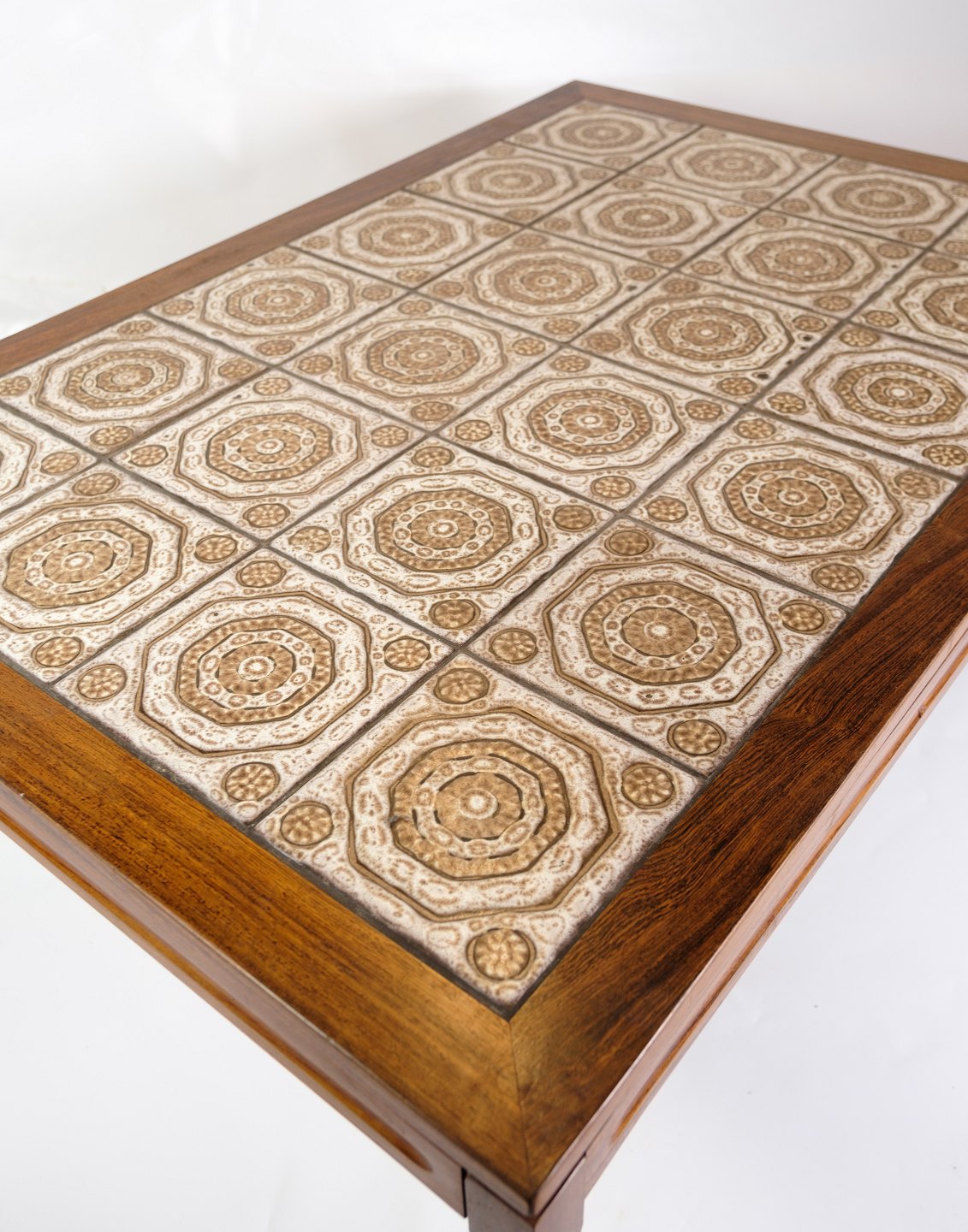 This rosewood coffee table is a beautiful example of the timeless beauty of the Danish furniture designer. Decorated with distinctive tiles, the table adds a touch of unique detail and aesthetic appeal.