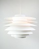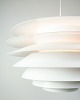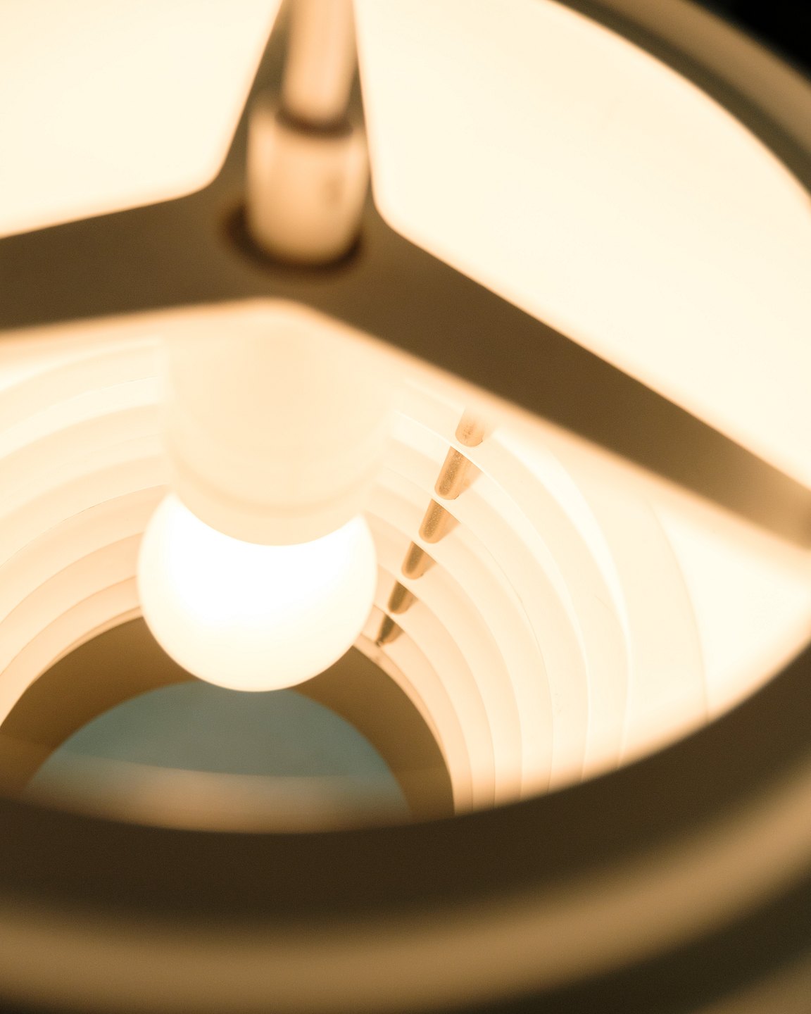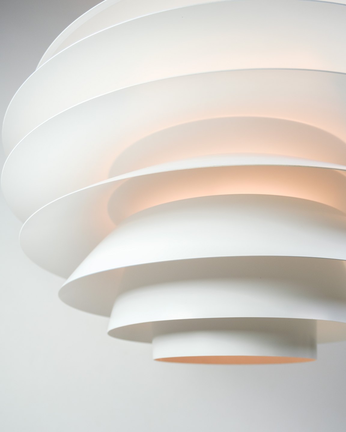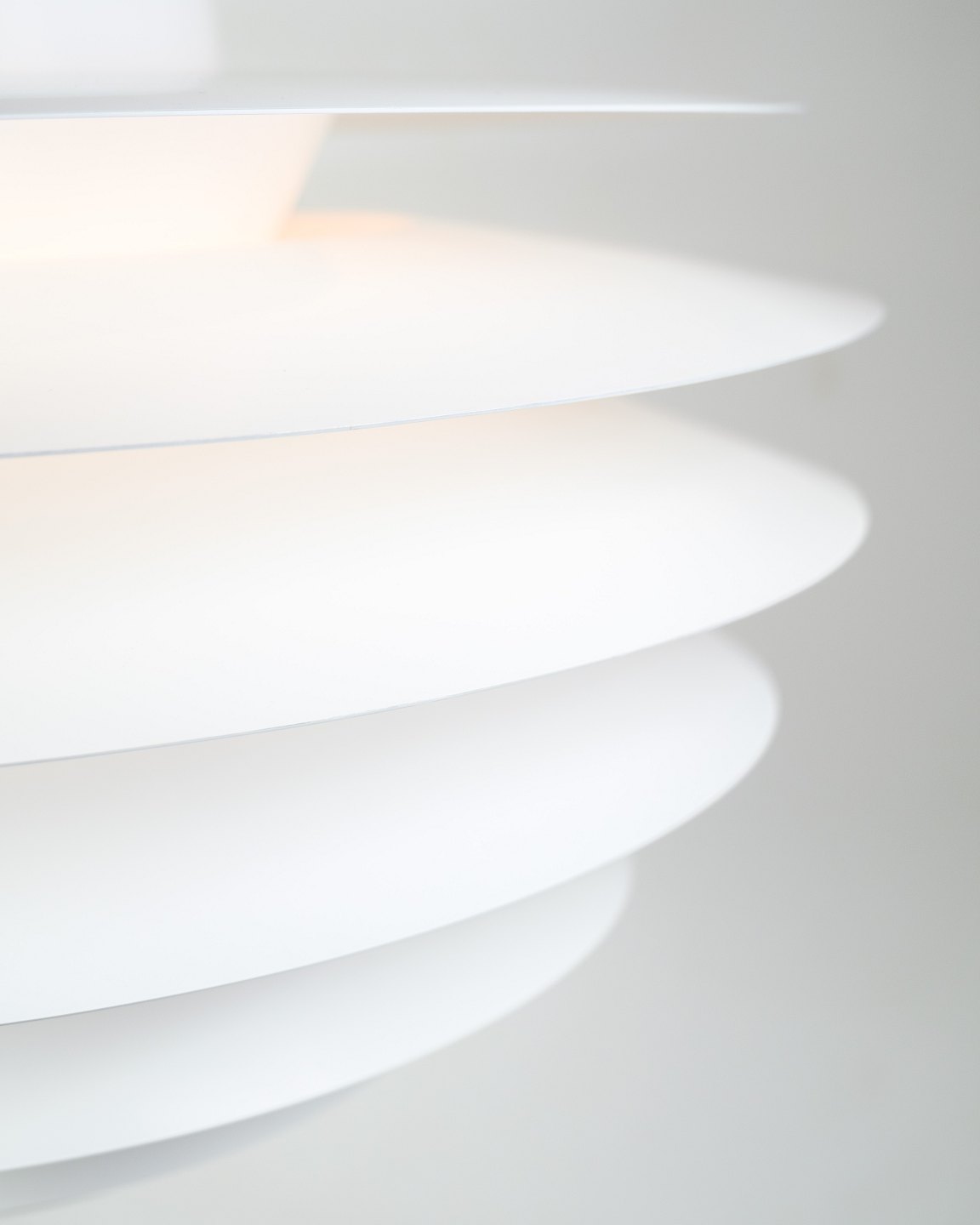 Lampens krop, udført i hvid lakeret metal, udstråler en subtil glans og skaber en visuel lethed. Den ovale form tilføjer et moderne touch, samtidig med at den bevarer en klassisk og alligevel sofistikeret æstetik. Den bløde bue og symmetri i designet gør denne loftlampe til mere end blot en lyskilde; den bliver en kunstnerisk erklæring, der forvandler ethvert rum.