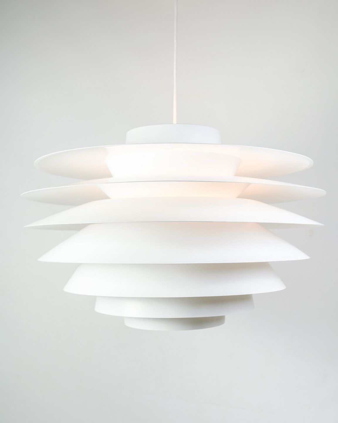 Oval loftlampe designet af den anerkendte Sven Middelboe og produceret af Thorn, bærer elegance og tidløs skønhed med sit unikke design. Denne lampe, kendt som model Verona, er skabt med omhu og præcision og er et mesterværk fra 1990'ernes æra af belysningsdesign.
