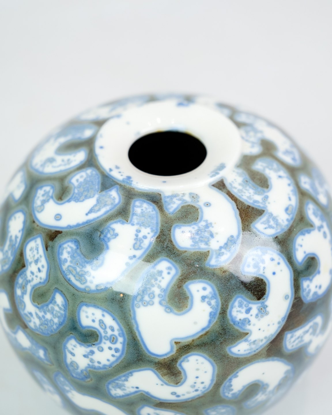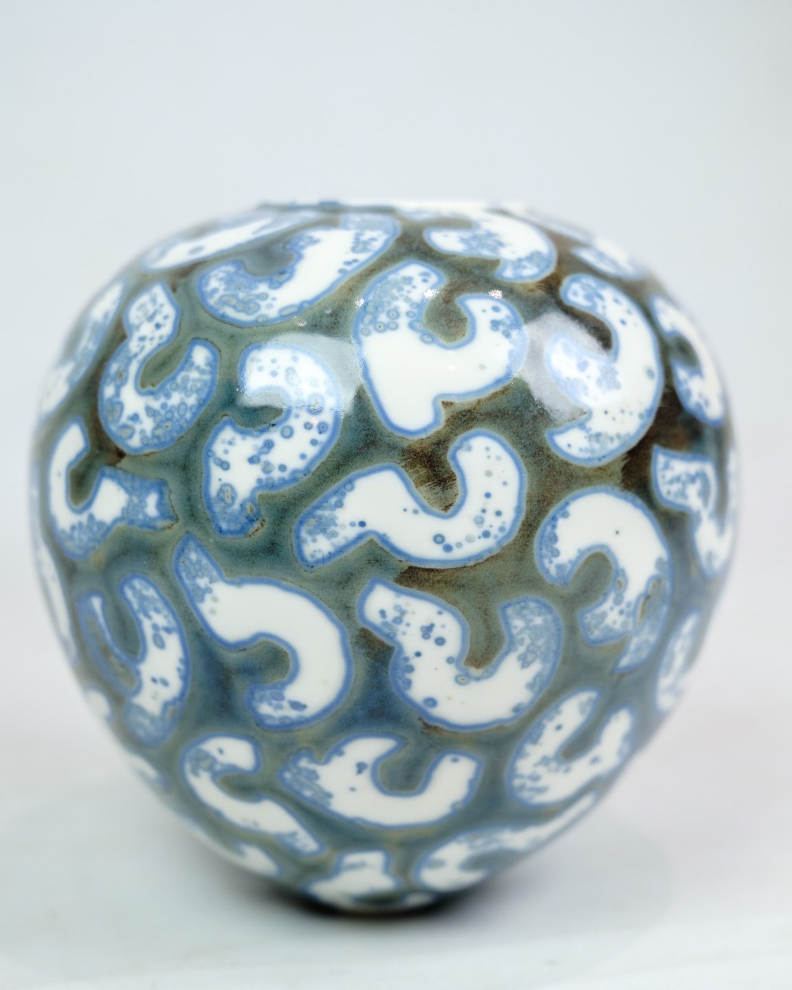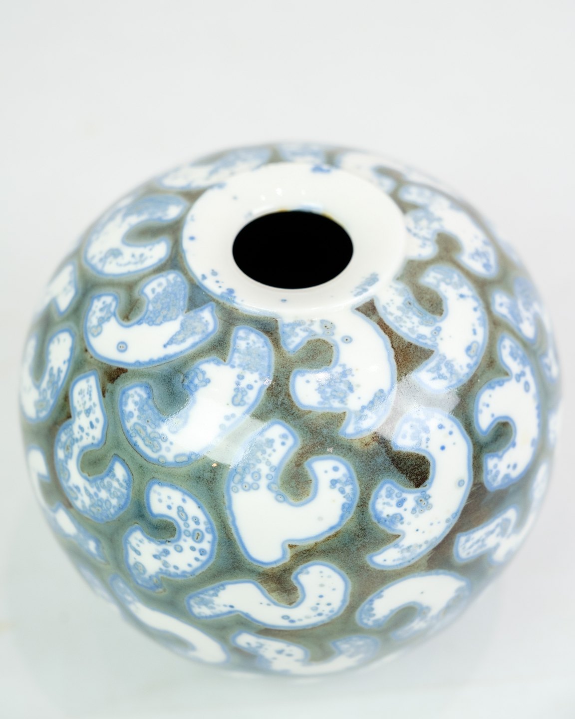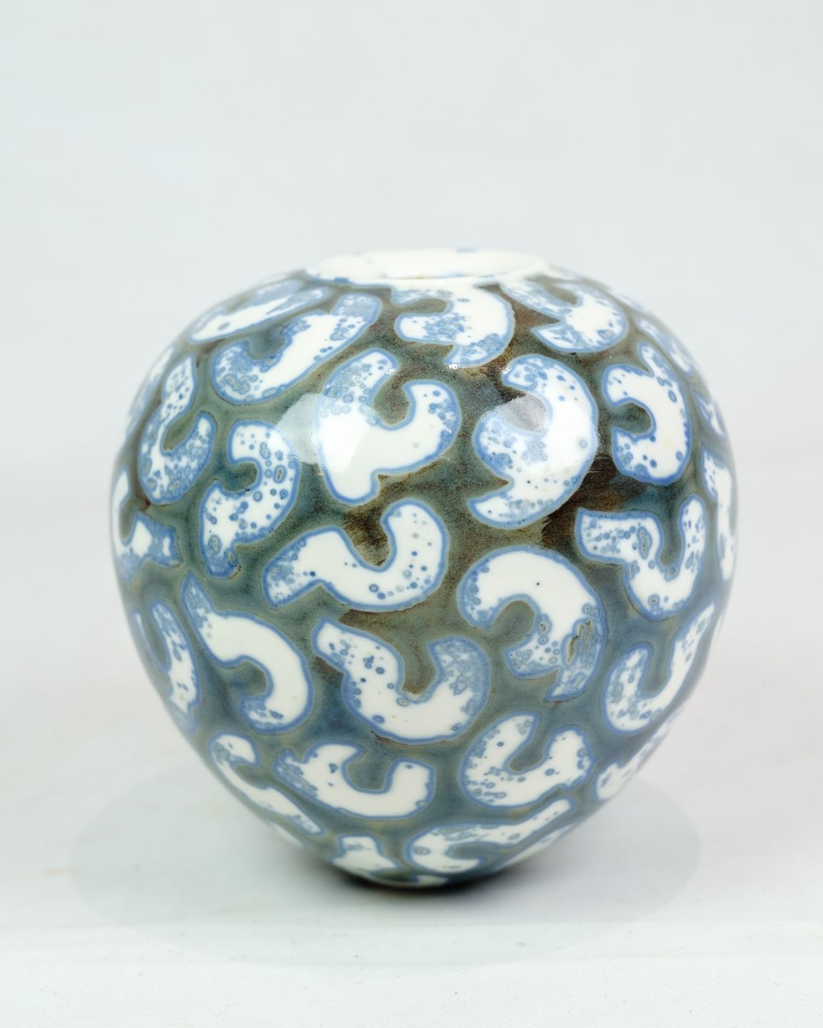 Kontakt os vedrørende prisKeramikvase af Per Weiss, en anerkendt dansk keramiker, kendt for sit talent og bidrag til kunsthåndværk. Vasen er mønstret med blå og hvide farver og dateres omkring 1990'erne. Per Weiss boede i Gammel Lejre, hvor han udførte sit håndværk og havde sin butik. Denne keramikvase repræsenterer hans kunstneriske stil og ekspertise inden for keramikfeltet. Det unikke farvemønster og den tidslige kontekst gør vasen til en interessant samlergenstand for dem, der værdsætter dansk kunsthåndværk.