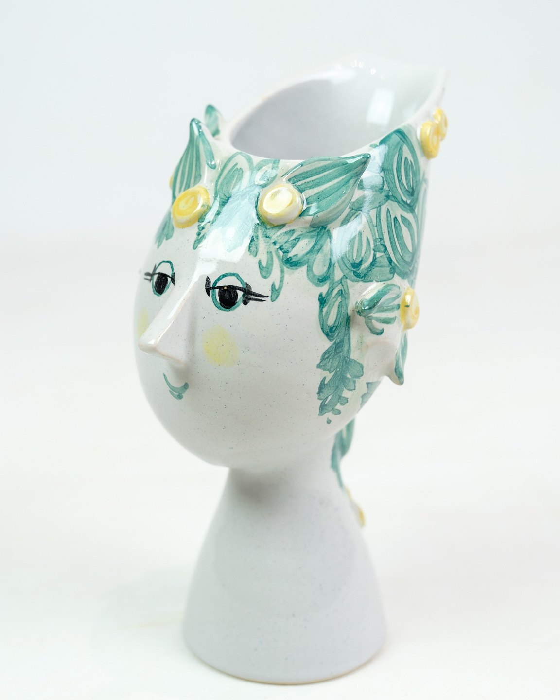 SoldCeramic vase designed by Bjørn Wiinblad, with design no. V18 from 1975, produced in Denmark. This vase represents Wiinblad's distinctive style, which often included imaginative and colorful patterns. With a period influence from the 1970s, this vase is not only a functional object, but also a work of art that reflects the designer's unique aesthetic. A collector's item for lovers of Danish design and Bjørn Wiinblad's creative works.