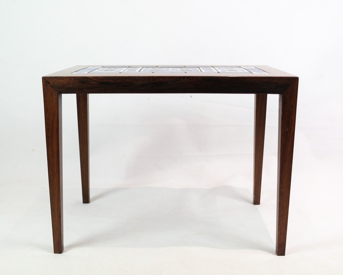Sæt af sideborde, model 34A, i palisander designet af Severin Hansen med fliser fra Den Kongelige Porcelænsfabrik, produceret omkring 1960'erne. Disse sideborde repræsenterer en smuk kombination af kvalitetsmaterialer og dansk designarv. Palisandertræet giver en varm og luksuriøs fornemmelse, mens fliserne fra Den Kongelige Porcelænsfabrik tilføjer et strejf af elegance. Dette møbel er ikke blot funktionelt, men også et tidstypisk kunstværk, der udtrykker designet fra den æra. Et enestående samlerobjekt for dem, der værdsætter vintage møbelkunst og dansk designhistorie.