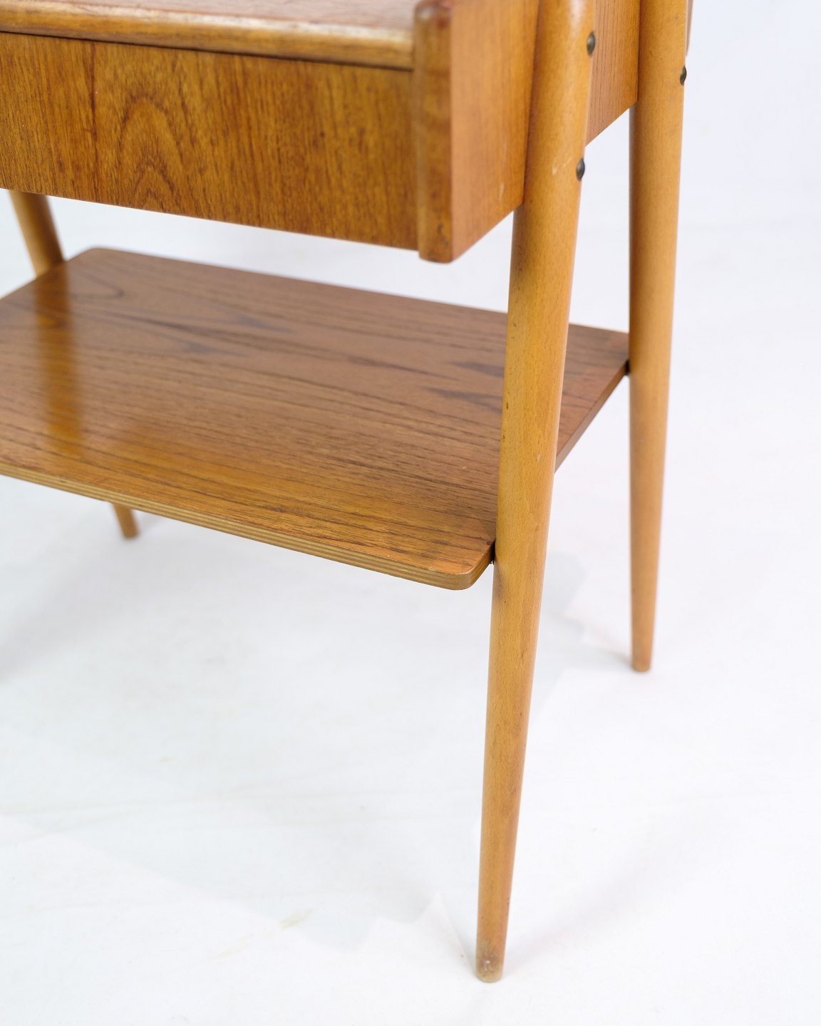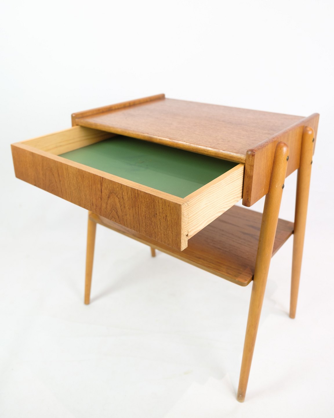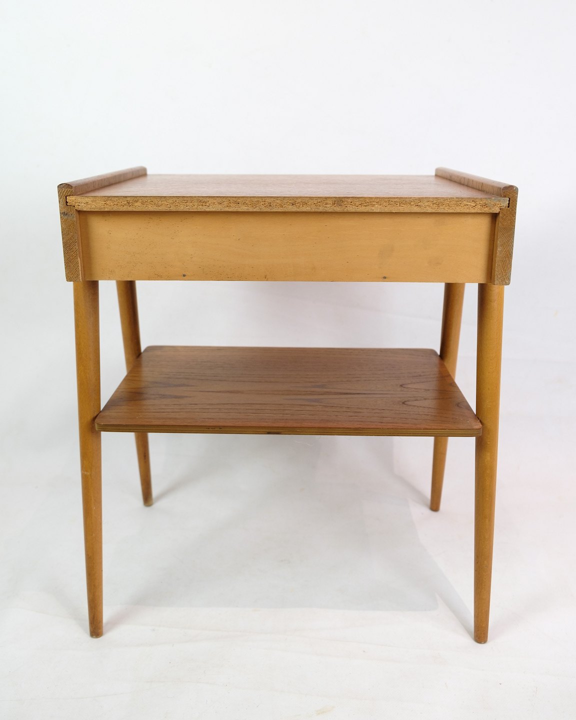 SoldSet of bedside tables on legs with drawer and shelf, manufactured by AB Carlström & Co møbelfabrik in Sweden from the 1950s. These bedside tables represent the timeless and functional design that characterizes Scandinavian furniture art from the period. The leg structure gives a light and airy appearance, while the drawer and shelf offer practical storage space. The manufacturer, AB Carlström & Co, was known for creating quality furniture.