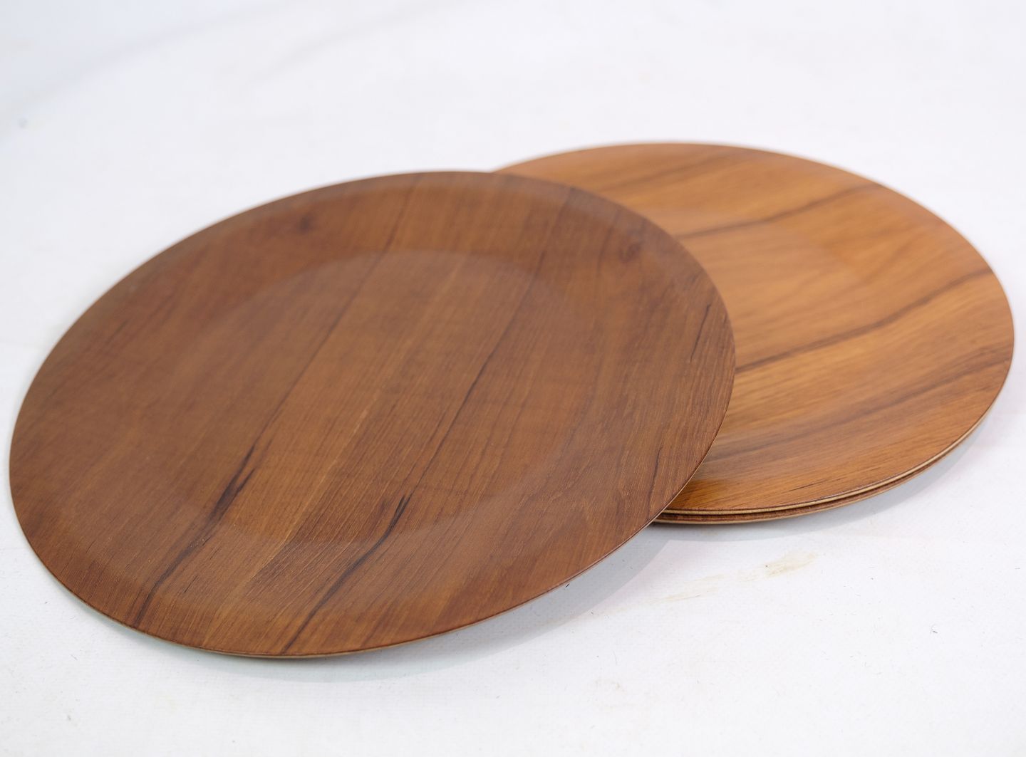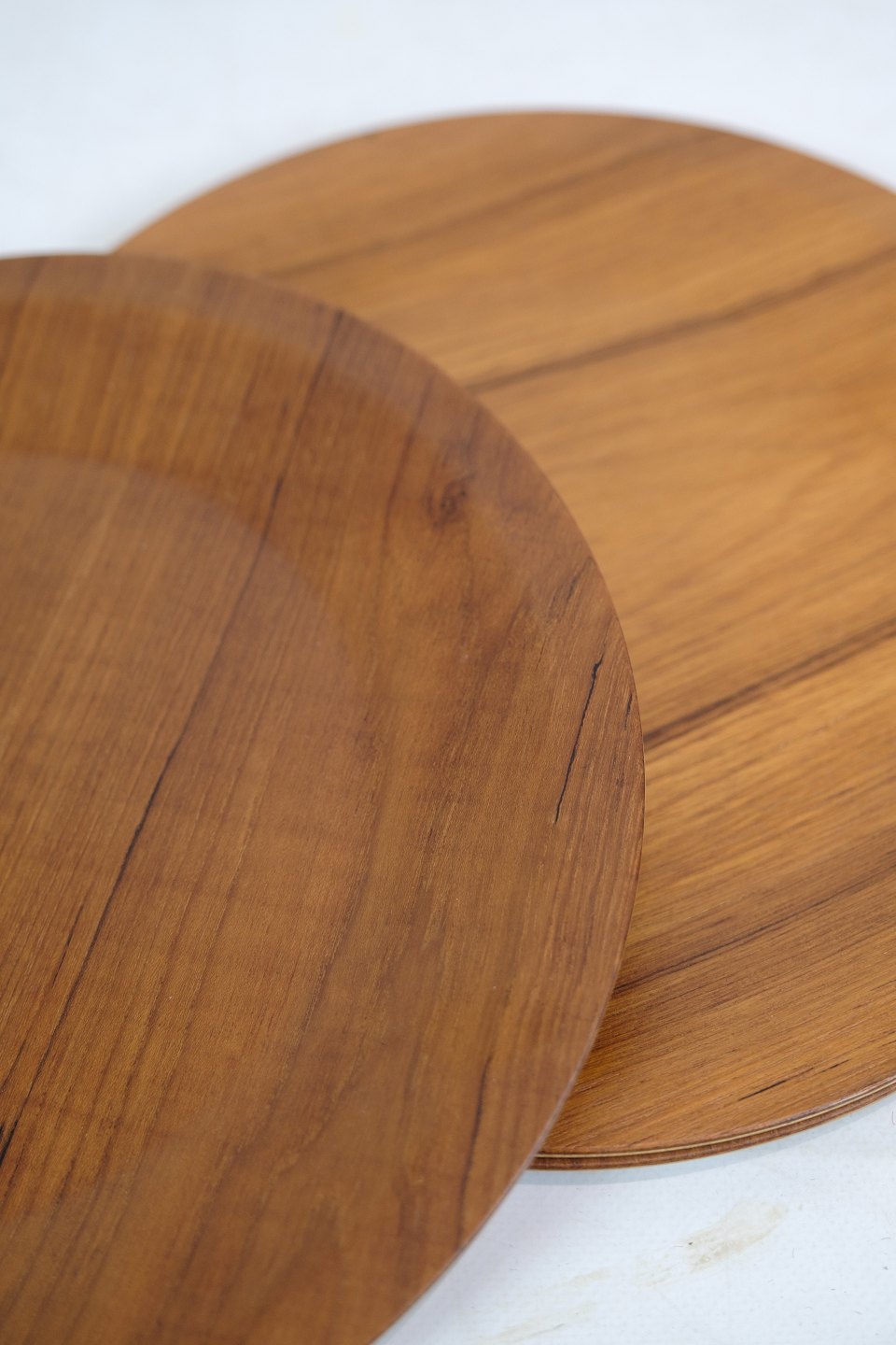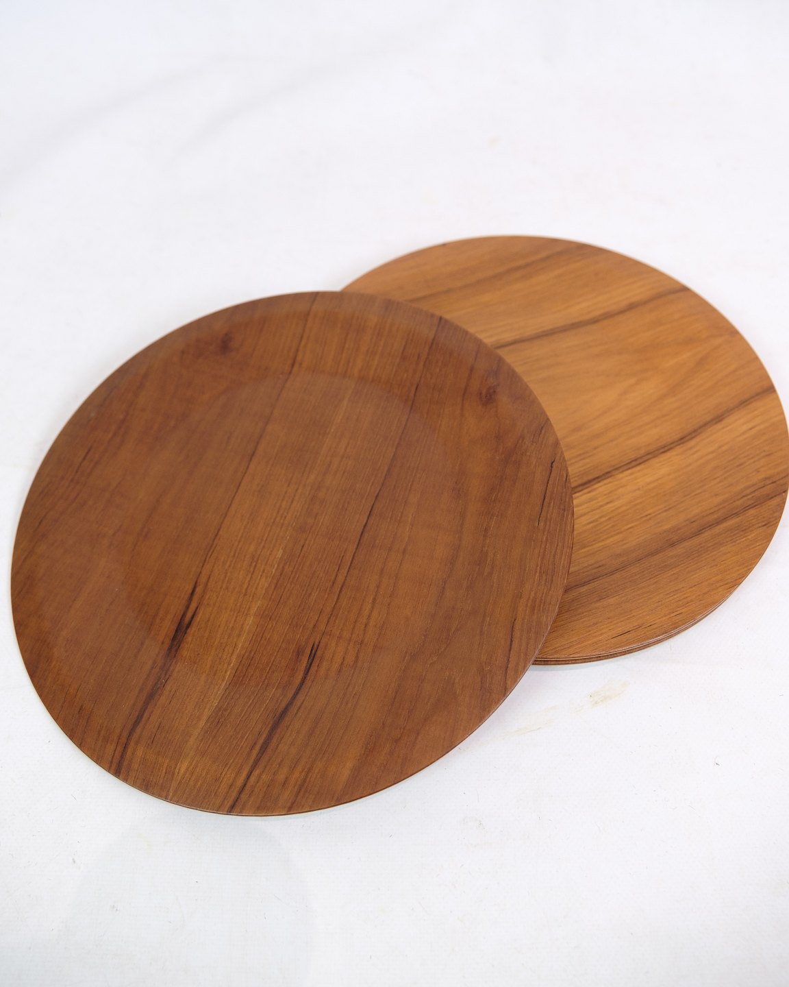 Hver tallerken er formet af teaktræets naturlige skønhed, der bringer varme toner og en distinkt kornstruktur. Denne æra var præget af en forkærlighed for enkelhed og funktionalitet, og disse tallerkner repræsenterer den tidløse elegance, der kendetegner midt-århundredes design.