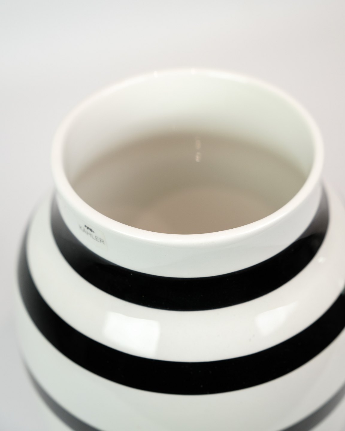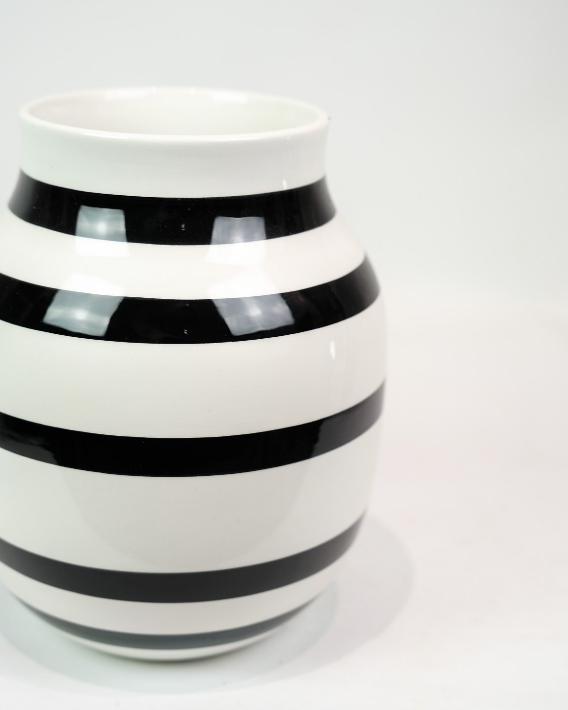 Kähler er en uundværlig favorit i utallige hjem takket være sit klassiske udseende og moderne design. Denne smukke vase, der er en del af en serie, passer perfekt til det skandinaviske hjem med sit enkle, men alligevel iøjnefaldende udtryk. Hver Kähler-vase i serien er håndmalet, hvilket betyder, at ingen to er helt ens. Den unikke charme og personlighed, der følger med variationerne i farve og bredde på striberne, gør hver vase til et kunstværk i sig selv. Tilføj et strejf af elegance og individualitet til dit hjem med en Kähler-vase, der vil pryde ethvert rum med sin skønhed og unikke karakter.