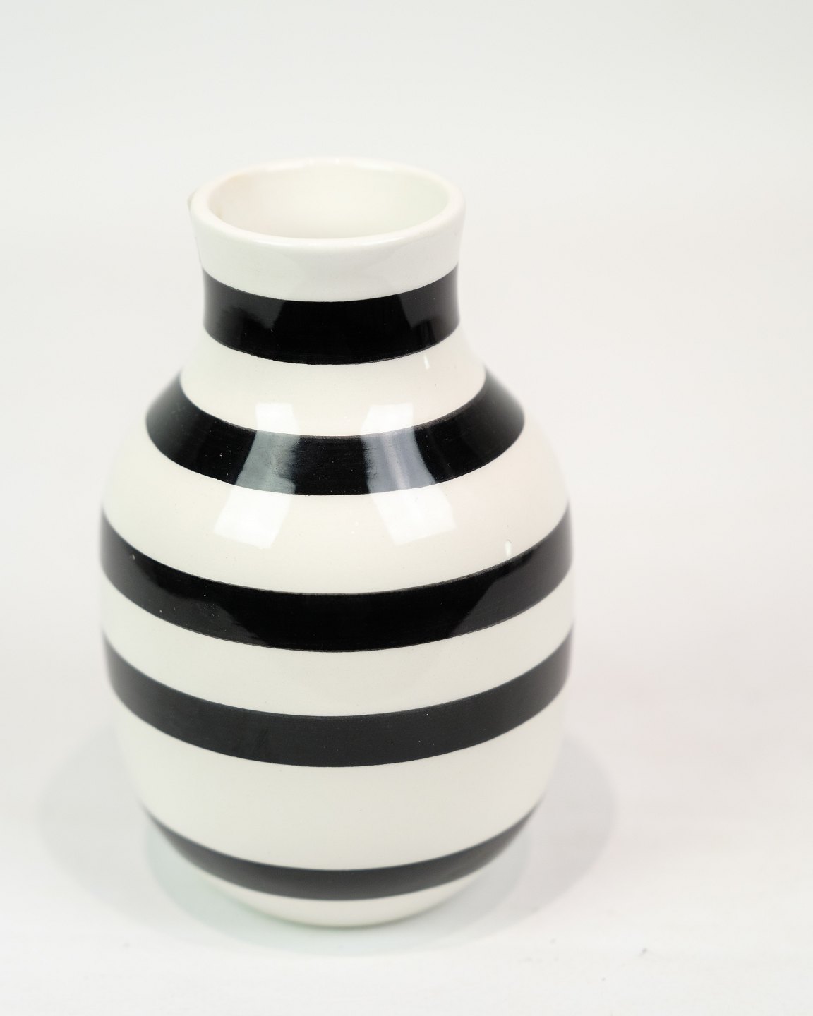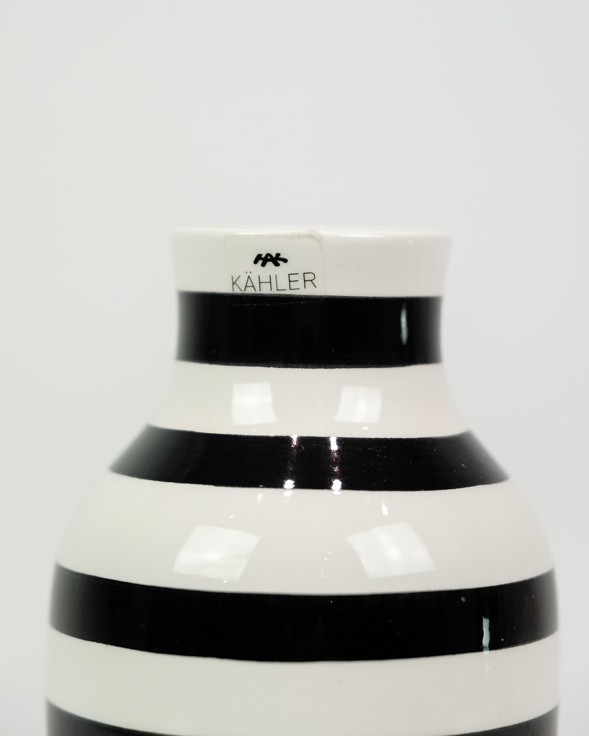Kähler er en uundværlig favorit i utallige hjem takket være sit klassiske udseende og moderne design. Denne smukke vase, der er en del af en serie, passer perfekt til det skandinaviske hjem med sit enkle, men alligevel iøjnefaldende udtryk. Hver Kähler-vase i serien er håndmalet, hvilket betyder, at ingen to er helt ens. Den unikke charme og personlighed, der følger med variationerne i farve og bredde på striberne, gør hver vase til et kunstværk i sig selv. Tilføj et strejf af elegance og individualitet til dit hjem med en Kähler-vase, der vil pryde ethvert rum med sin skønhed og unikke karakter.