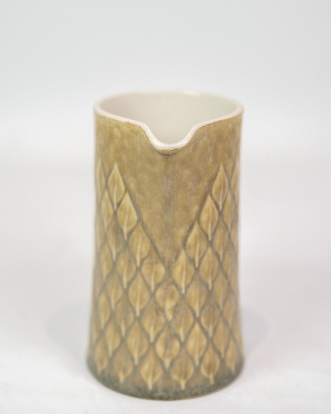 Mælkekanden fra Bing & Grøndahl, designet af Jens Quistgaard som en del af Relief-serien, er et smukt eksempel på dansk keramisk stentøj.