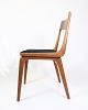 SoldThe set of six dining Room chairs, also known as the Boomerang Chair, model 370, is a brilliant example of Danish furniture design from the 1950s. These chairs were created by the talented furniture designer Alfred Christensen and manufactured by Slagelse Møbelværk.
