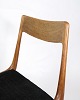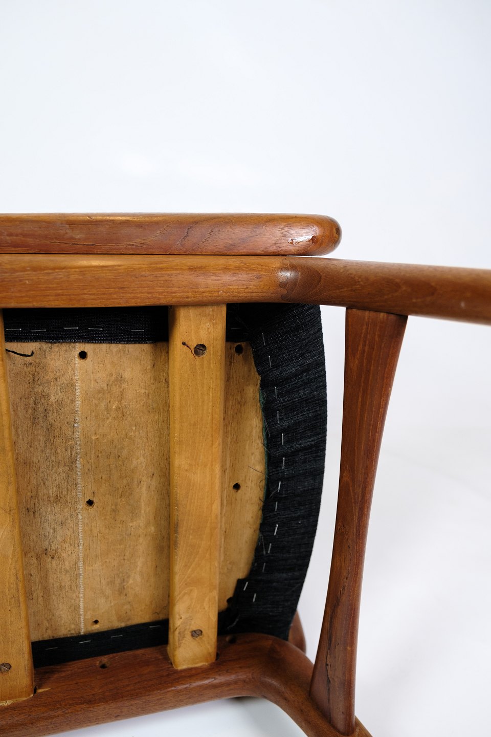 The upholstered seat and backrest in black leather add a luxurious contrast to the teak frame. The leather not only offers a comfortable sitting experience, but it is also known for its durability and ease of maintenance.
