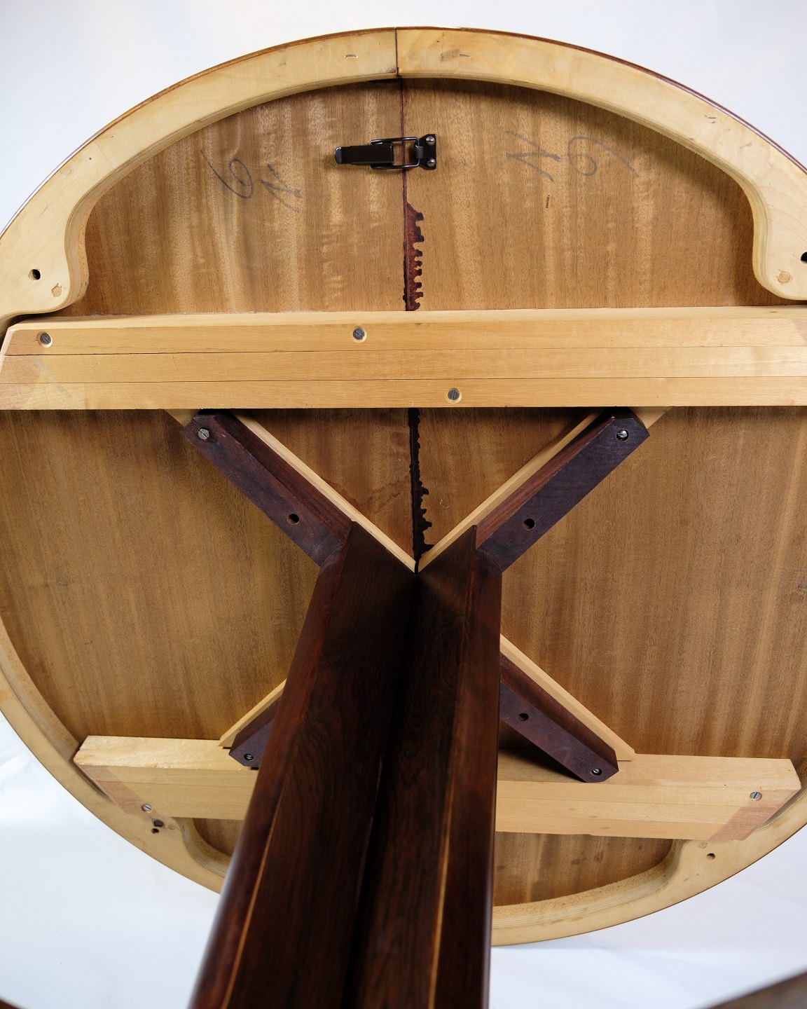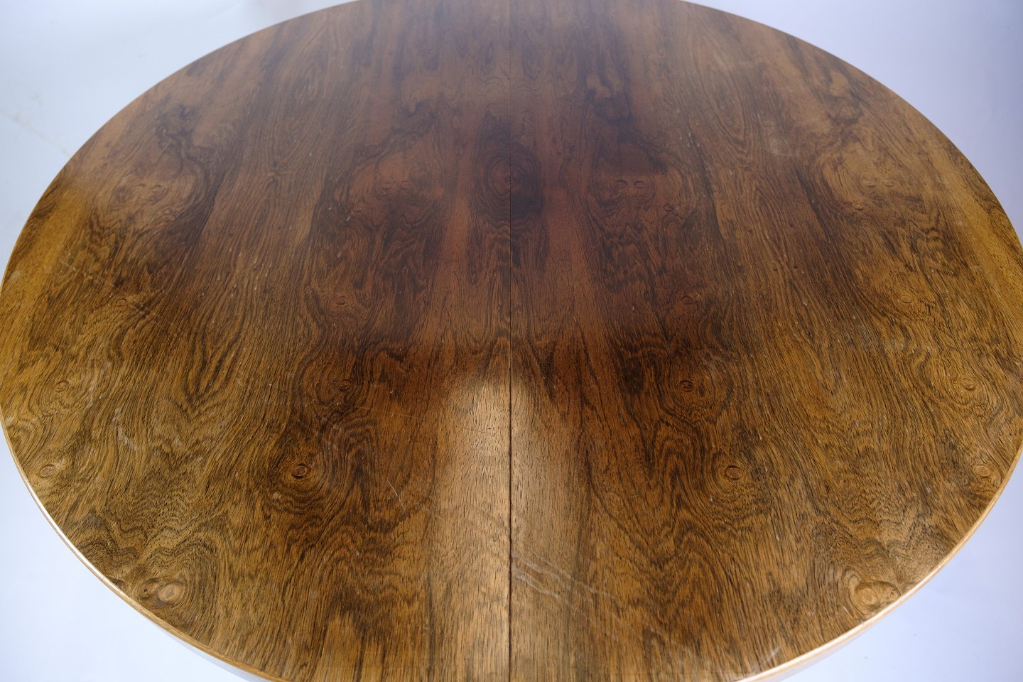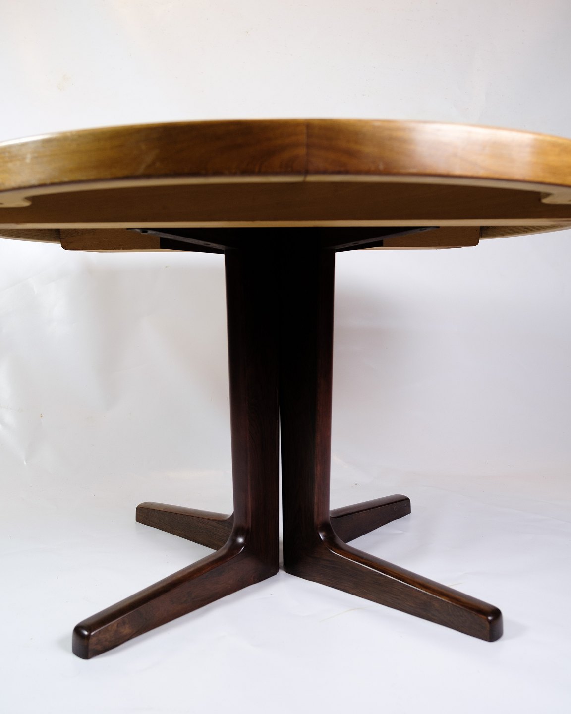 SoldThis round dining table in rosewood from 1960, produced by Skovby Møbelfabrik, is a splendid example of Danish furniture art and craftsmanship from the mid-20th century. The rosewood, with its warm and rich color, adds a luxurious feel to any dining room.