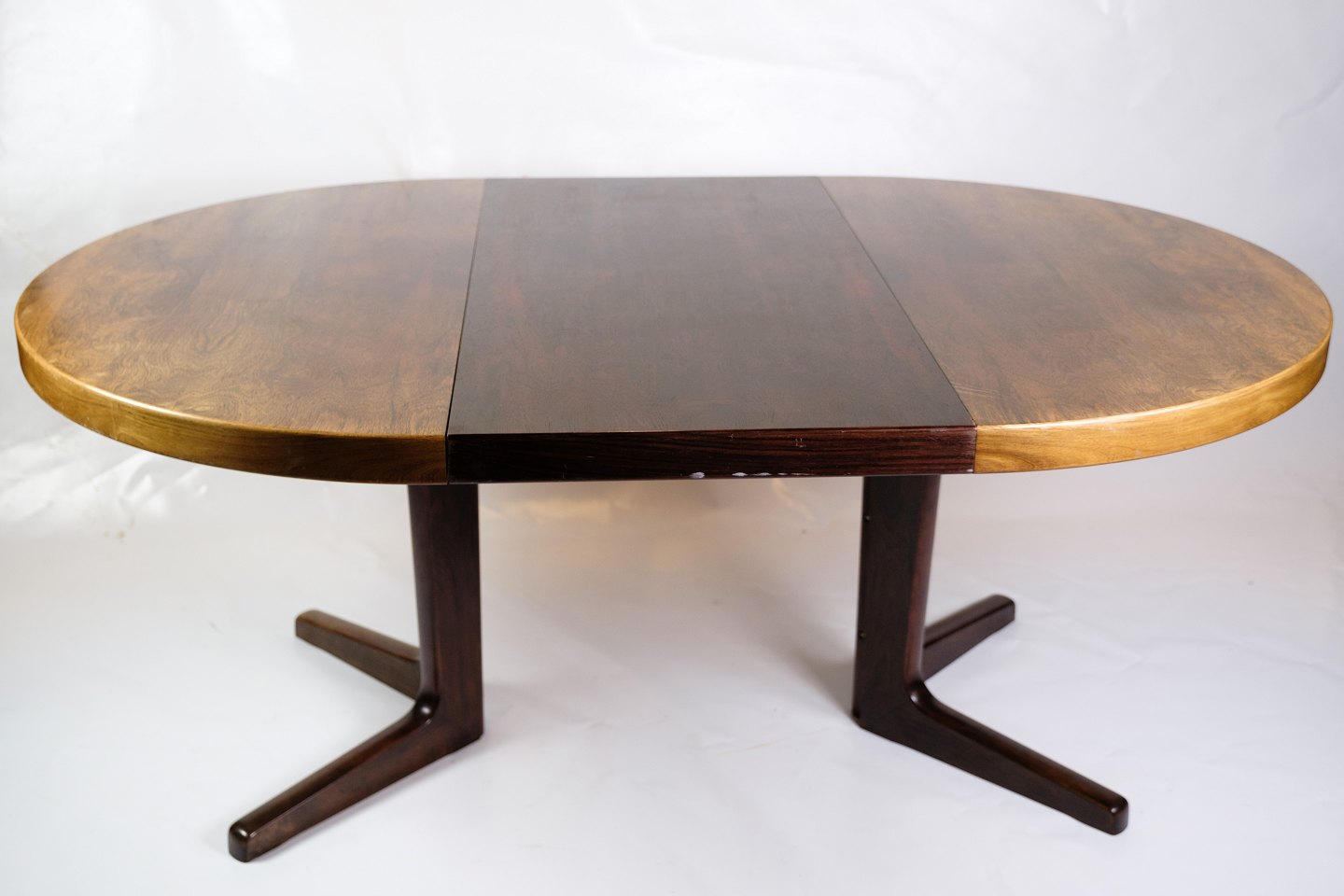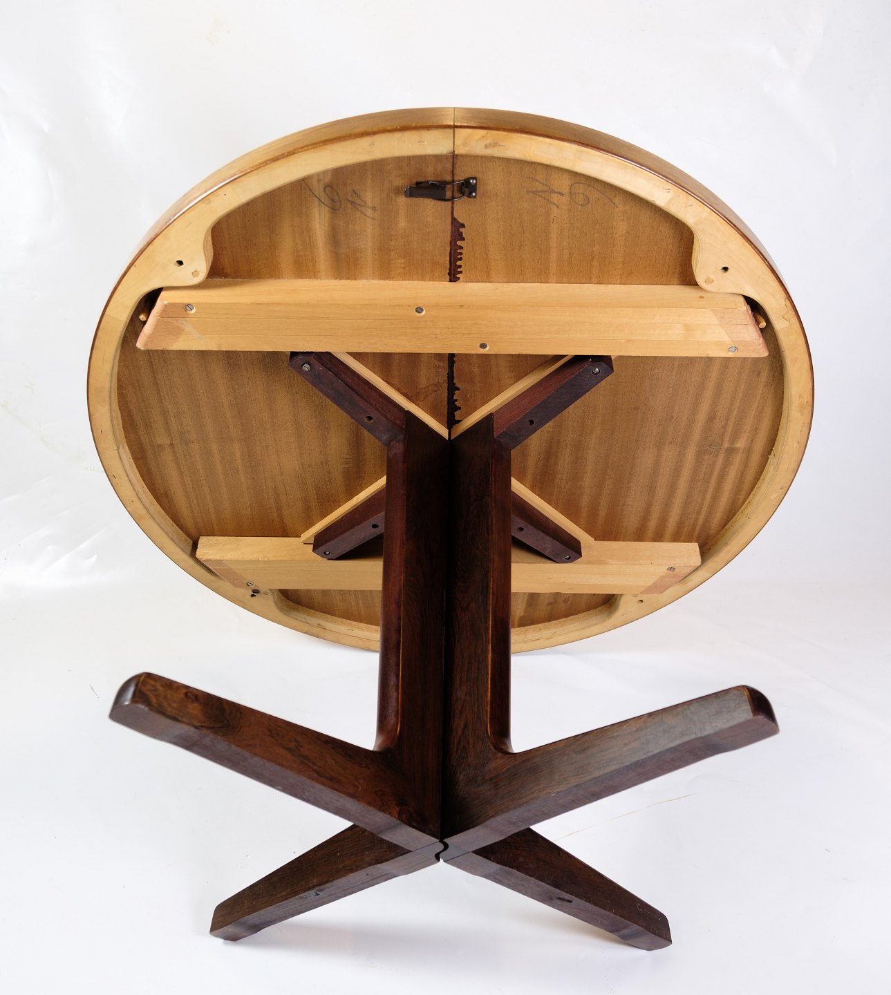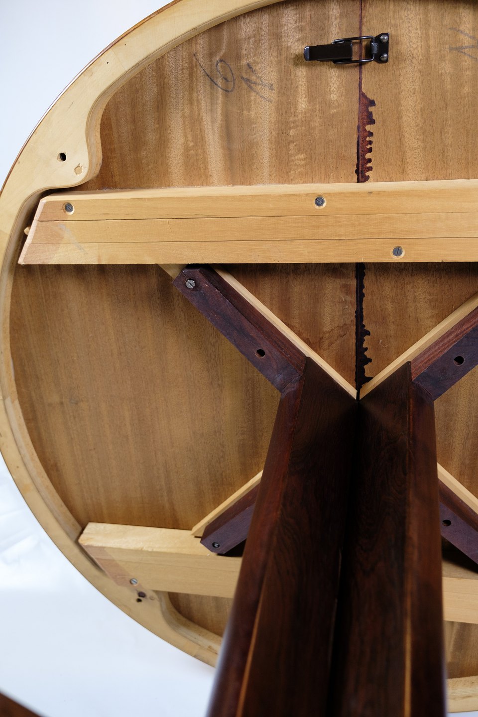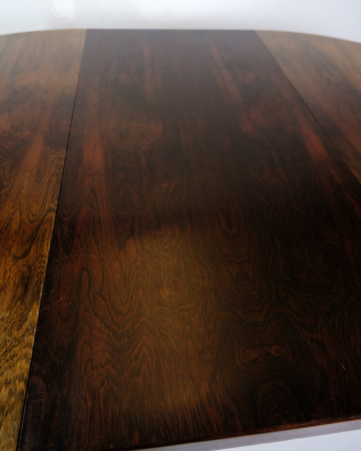 SoldThis round dining table in rosewood from 1960, produced by Skovby Møbelfabrik, is a splendid example of Danish furniture art and craftsmanship from the mid-20th century. The rosewood, with its warm and rich color, adds a luxurious feel to any dining room.