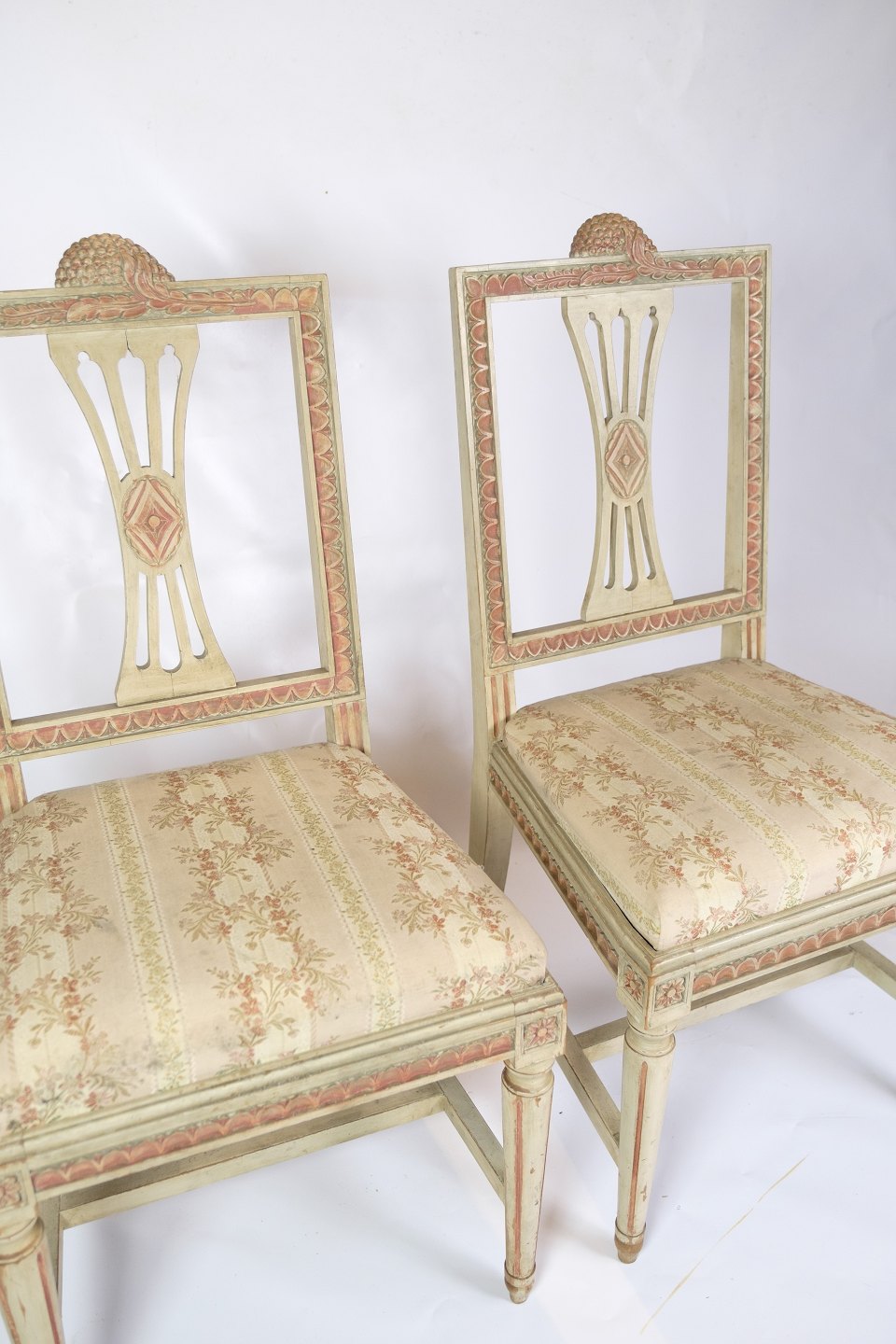 SoldThis set of two Gustavian style chairs from 1880 is a beautiful expression of early European furniture art and aesthetics. Inspired by the Swedish Gustavian period, these chairs are characterized by their elegant and refined design.