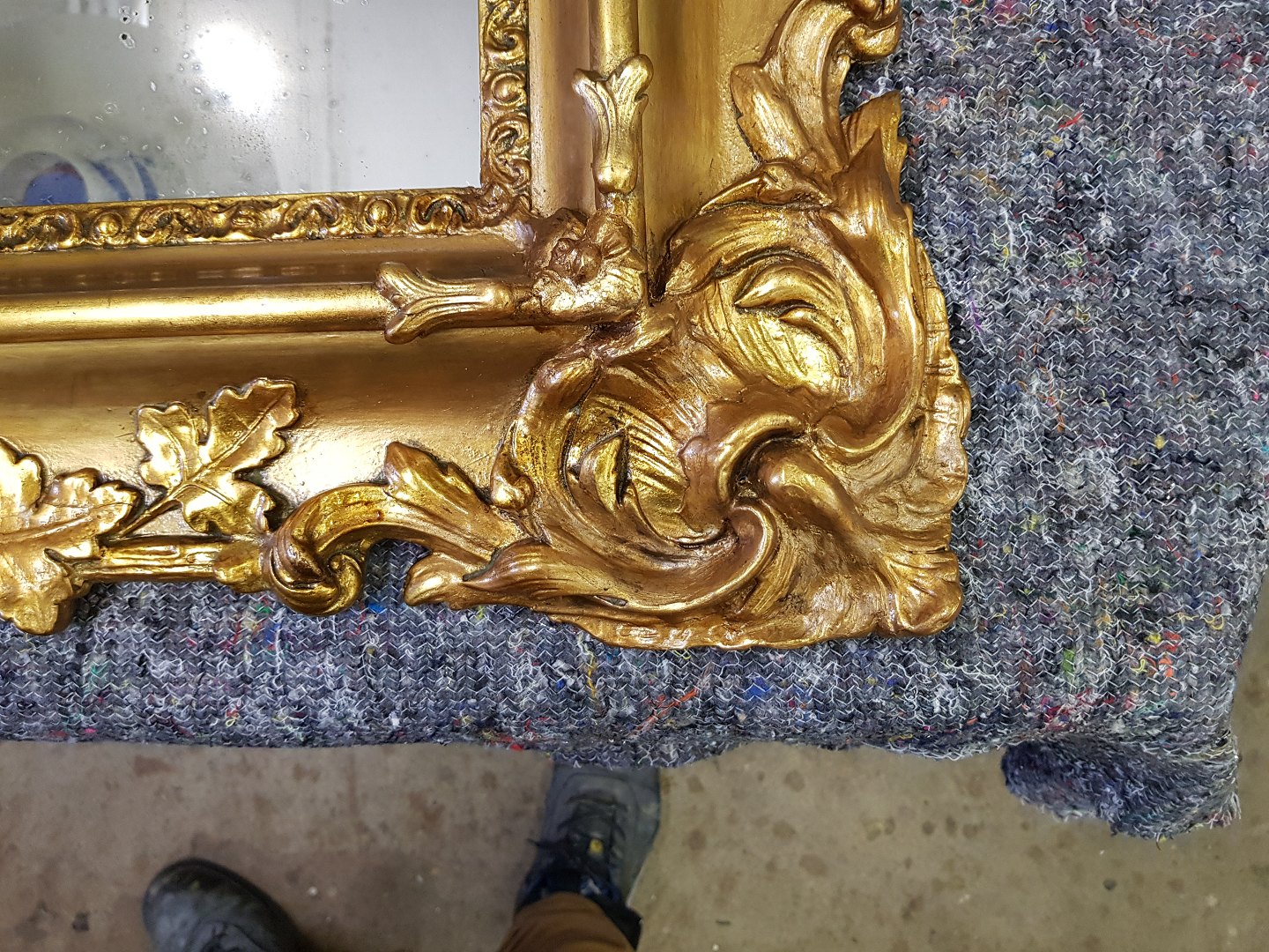 Vores dygtige snedkere har omhyggeligt repareret og genskabt spejlet til sin oprindelige stand.