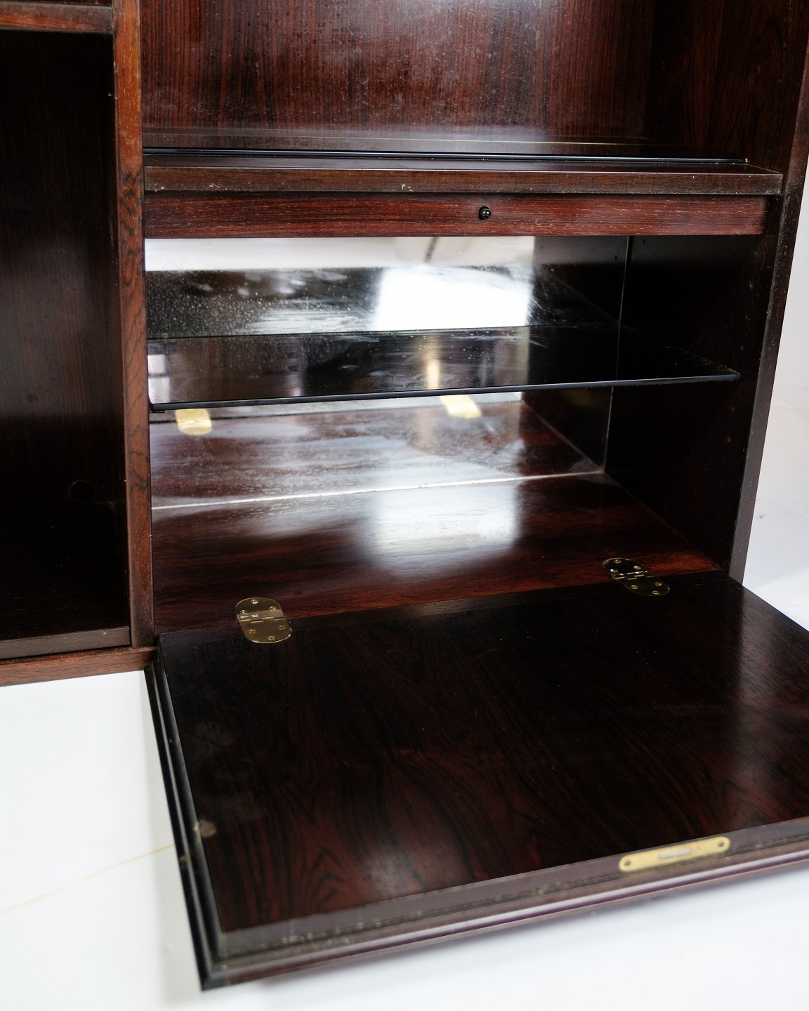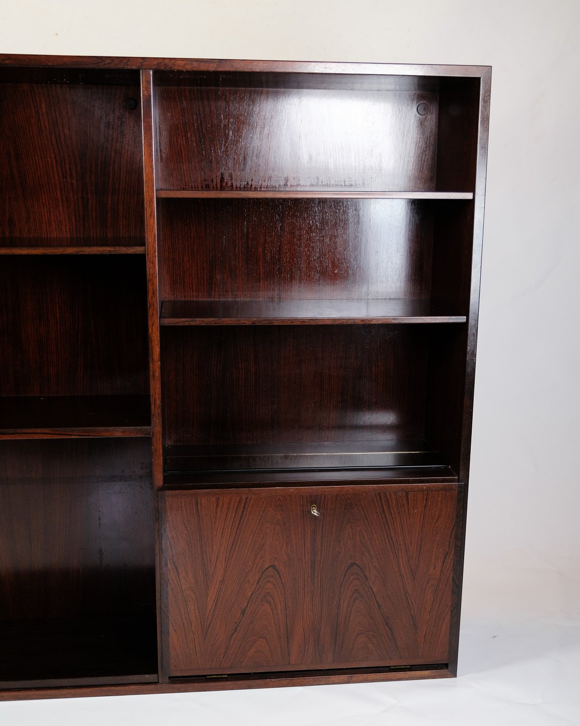Denne reol i palisander træ, kendt som model 35, er et strålende eksempel på den tidløse elegance inden for dansk møbeldesign. Med sit rige træmateriale og omhyggelige konstruktion er denne reol ikke kun et praktisk møbel, men også et kunstværk i sig selv.