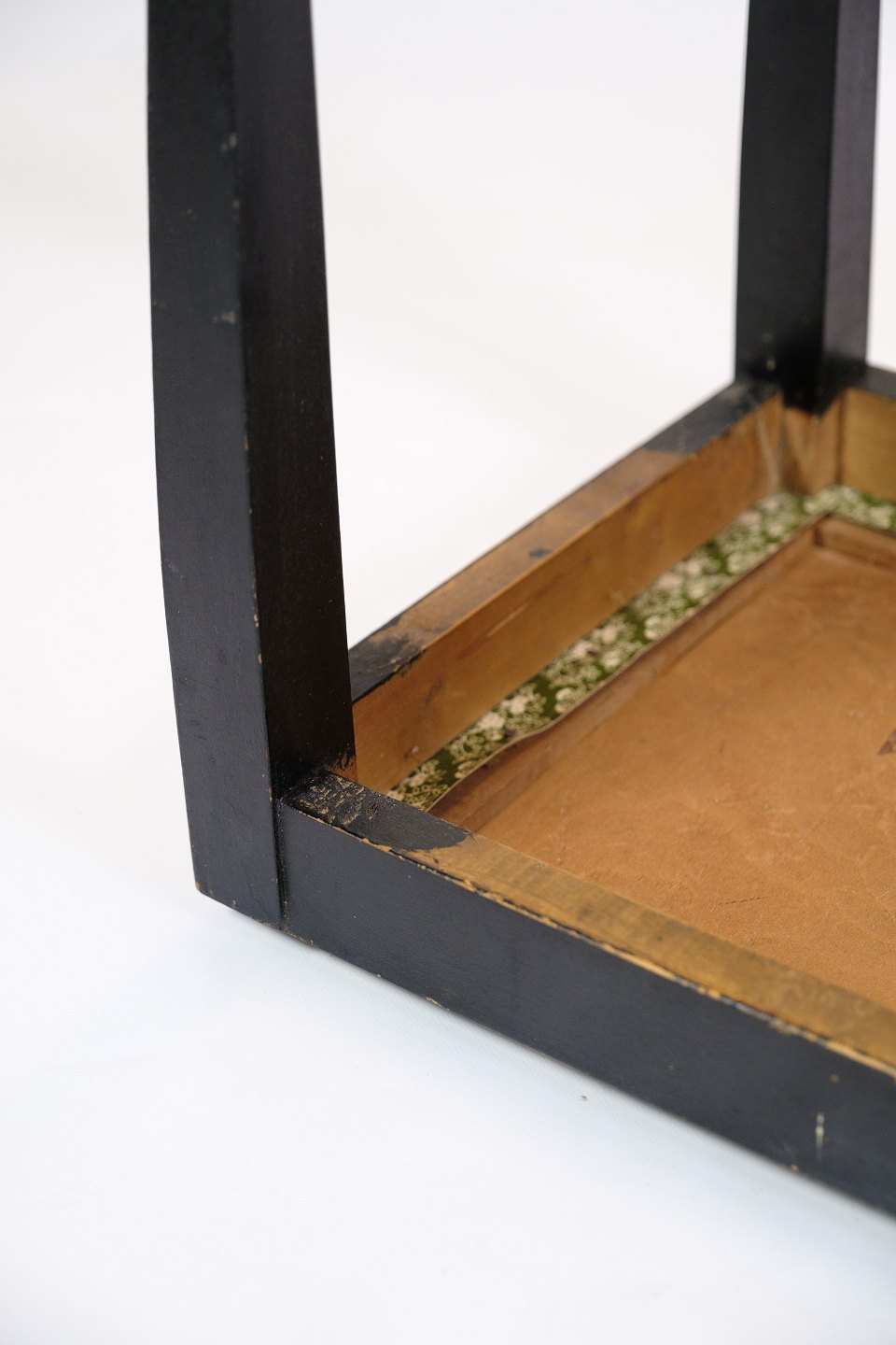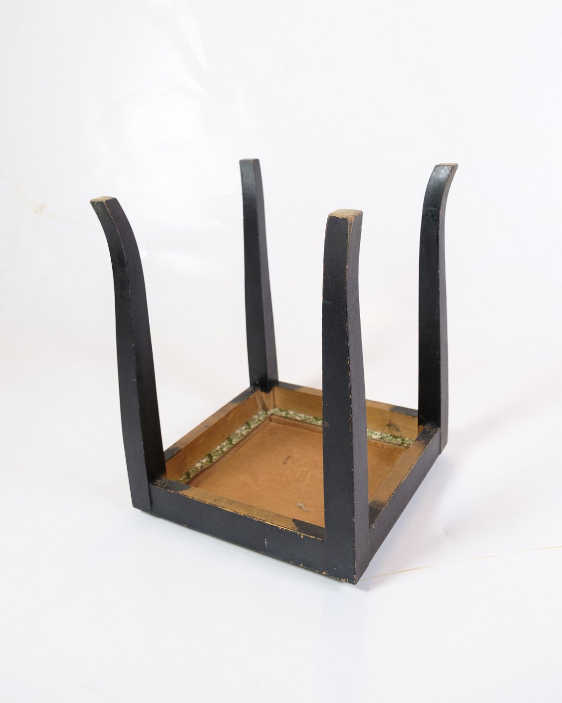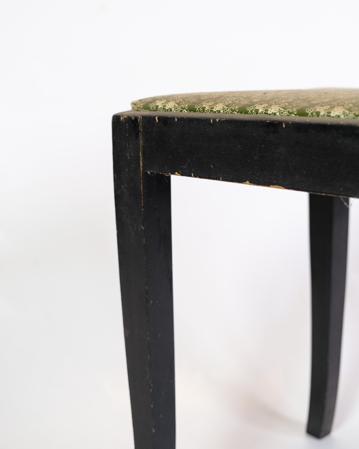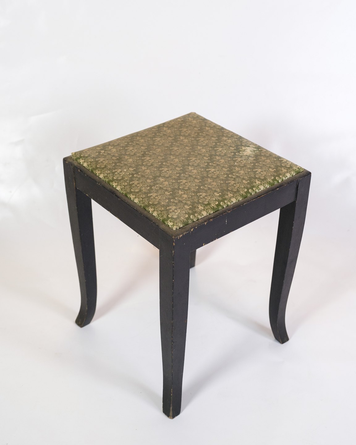 Antique Stool from approx. 1920 in black paint. This stool exudes timeless charm and historic elegance. With its original cover, it bears a unique stamp of its time, giving it authentic character and aesthetics.