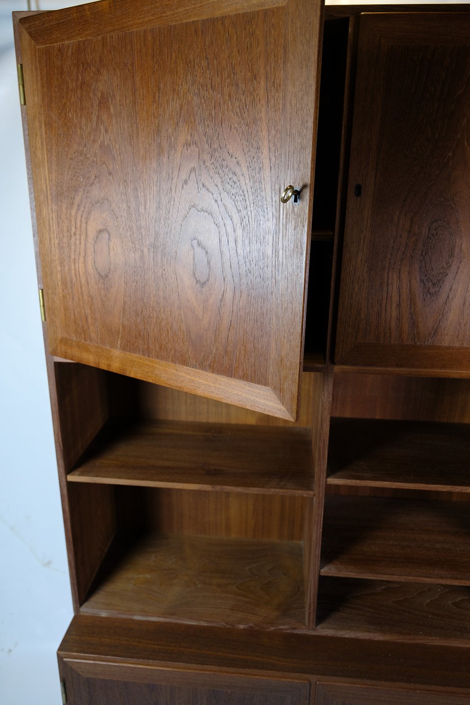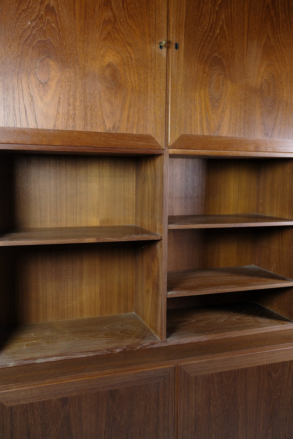This bookcase made of teak from the 1960s is a fantastic example of Danish furniture art. With its extensive storage capacity and beautiful design, this bookcase exudes both functionality and aesthetics.