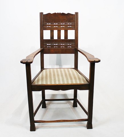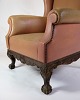 Det mest bemærkelsesværdige træk ved denne stol er dens høje ryglæn og de karakteristiske øreklapper, der giver en følelse af hygge og komfort.